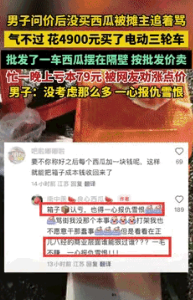 “不蒸馒头争口气”!江苏南京,一33岁的物流公司职员,买瓜时随口问了句价格,便遭摊主恶语羞辱长达一小时,谁知道,咽不下这口气的职员,隔天竟花4900元购置电动三轮车,批发600斤西瓜,在摊主隔壁按进价售卖!网友:太硬气了![微风]