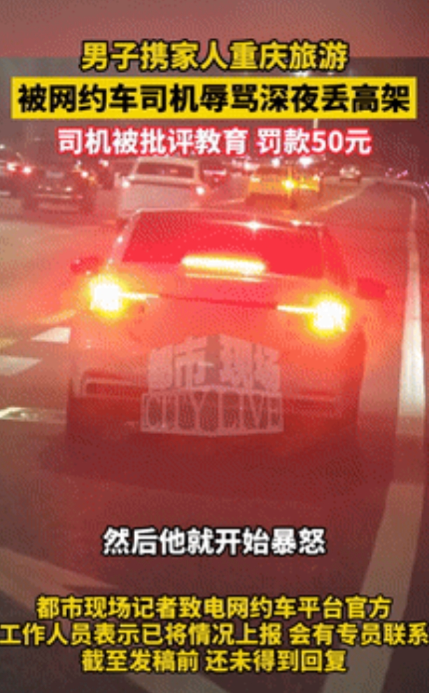 必须严惩!一男子和家人去重庆旅游,没想到,坐网约车时因单价太低,遭到司机的辱骂,并还在深夜将其丢到高架桥上,不料,当他投诉之后,得到的处理结果只是司机被批评教育,外加50元的罚款! 据都市现场8月1日的报道,当男子和家人坐上车后,司机就开始不断的说着脏话,并且好多都是针对于女性的。 因为随行的不光有老人还有孩子,男子就听不下去了,便提醒司机说话要文明一些,却没想到,这句话直接惹怒了对方。 随后就强烈要求他们一家下车,要知道,当时他们所处的地点可是在高架桥上,车来车往的很容易出现安全问题。 不过,在看到司机这副样子,男子担心会引发更激烈的冲突,于是就下车了,后面还是又大了一辆车,才回到了酒店。 当然事情肯定不会就此完结,事后他就将情况反映给平台以及有关部门,但是最终的处理结果,却让他非常不满意。 针对于司机的那些行为,他竟然只是受到了批评教育,外加50元的罚款,这放在谁的身上恐怕都接受不了吧。 无奈之下,男子只好寻求媒体的帮助,看看能否通过这种方式,来为自己讨回个公道。 说实话,就这个处理结果,看起来和瞎胡闹一样,不痛不痒的有啥用,吊销从业资格证才是最正确的做法,别以为随便罚些钱,再口头上教育两句,那就能说是“惩罚”了。 那么对于这件事情,您有什么想说的呢? 信息来源:都市现场 2025-8-1