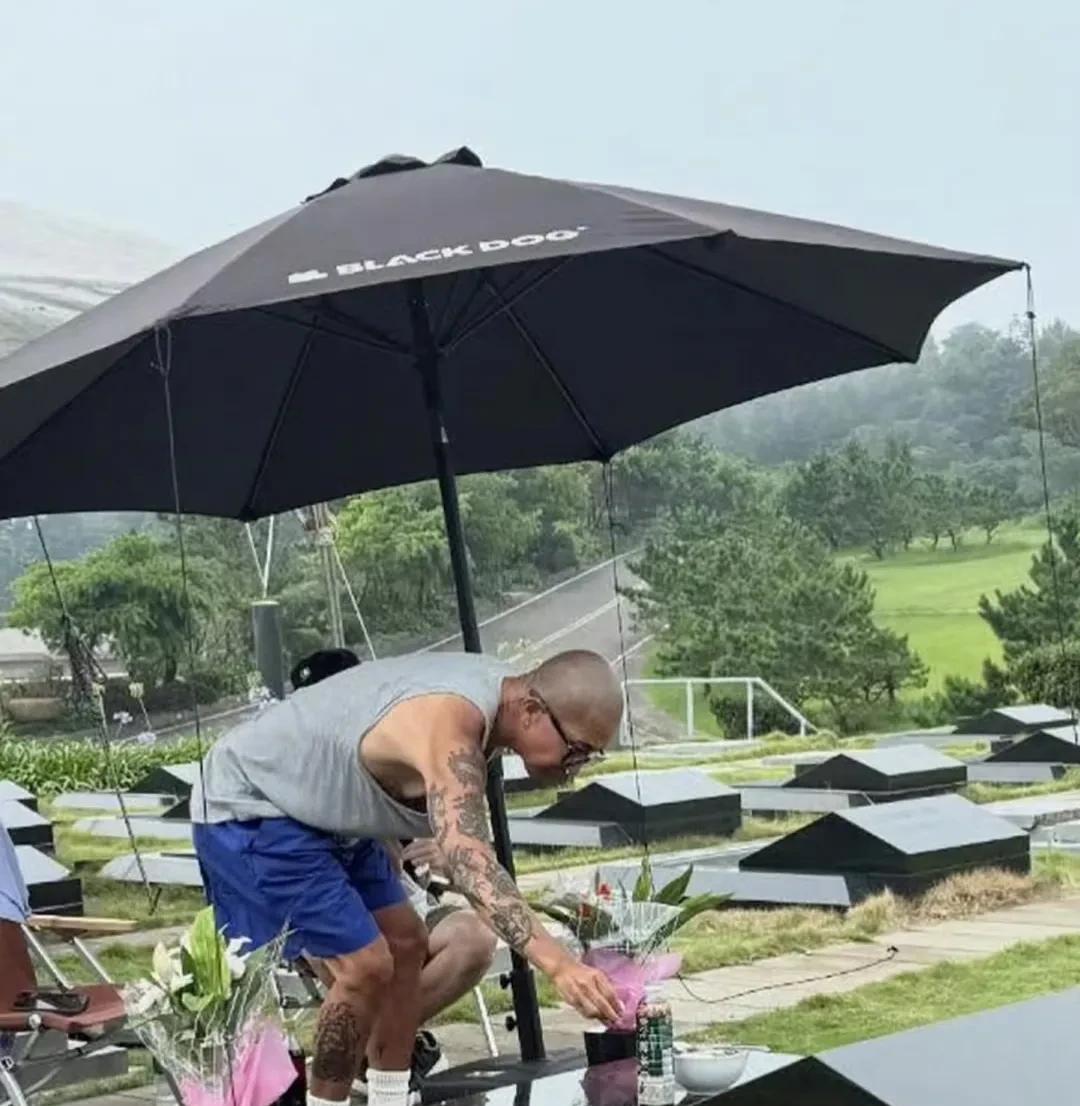 这个人是具俊晔吗?这一次,他带着美酒和蛋糕,来到了墓碑前。2个酒杯里都倒上了酒,好像在和妻子对饮。 他身上穿的貌似是雨衣,看来是刚下过雨。他弯着腰,仔细端详着那些甜蜜照片。 旁边仍然是粉色纸包装的鲜花,可能因为大S喜欢粉色吧。 现在流出的照片,分别有遮阳伞、雨披等不同装备,正好对应了不同的天气。说明他风雨无阻,不管什么天气,都会去看大S。
