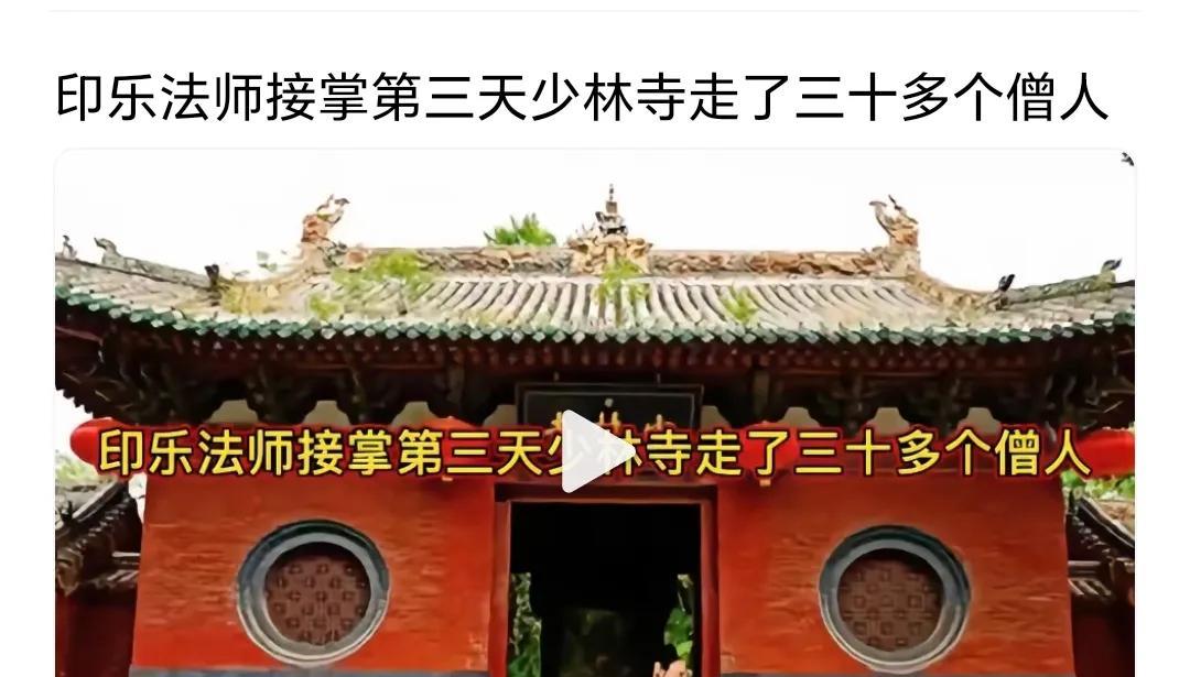 新任少林寺住持印乐大师上任三天,少林寺走了30多位僧人,原因是适应不了新规和曾经