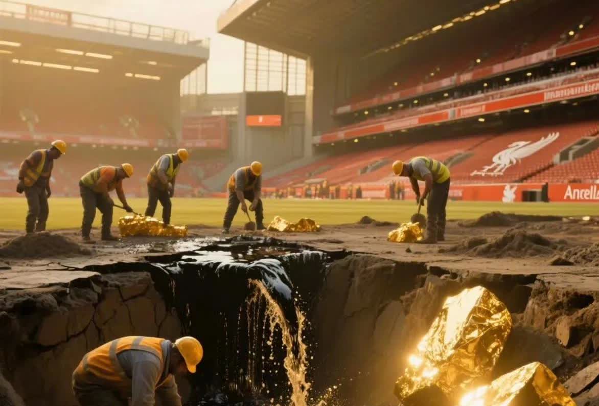 实锤了,利物浦主场下面全是石油和黄金,1.5亿镑算个嘚! 罗马诺称,利物浦1.