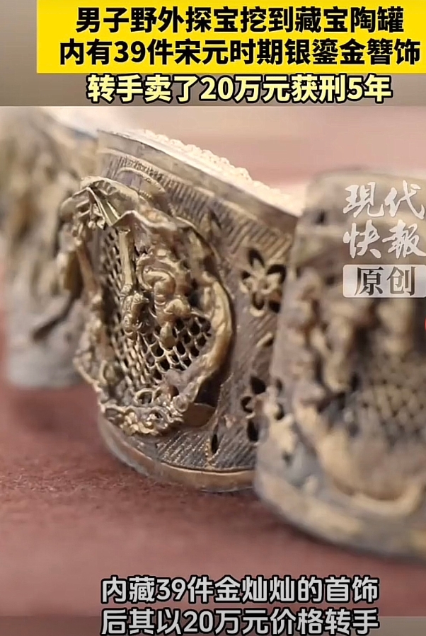 江苏,一男子拿着金属探测仪来到一干枯的水库边寻宝,结果还真的找到了一陶瓷罐子,罐子里藏着39件首饰,于是,男子将这些首饰以20万的价格卖了出去,结果男子却因此被判了5年,20万不仅罚没了,而且还罚了3万元,网友表示,天上掉下的馅饼你也接不住。