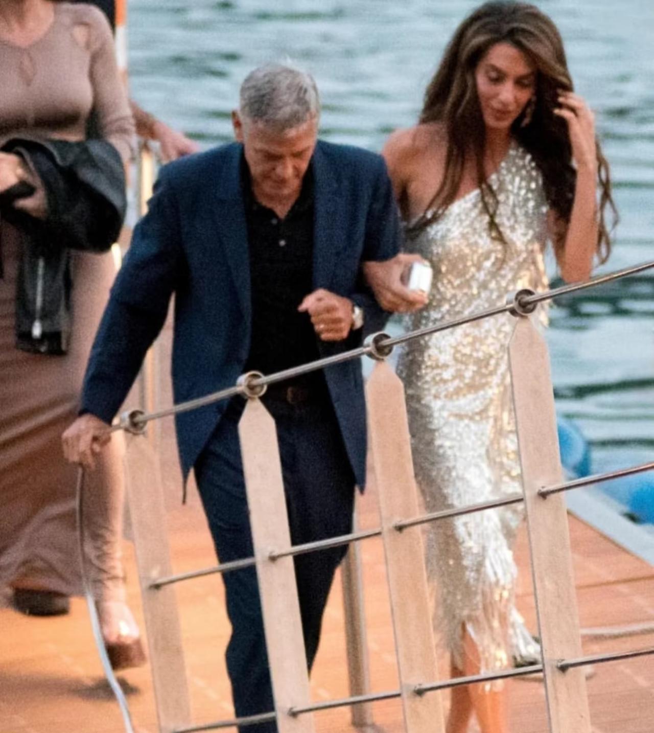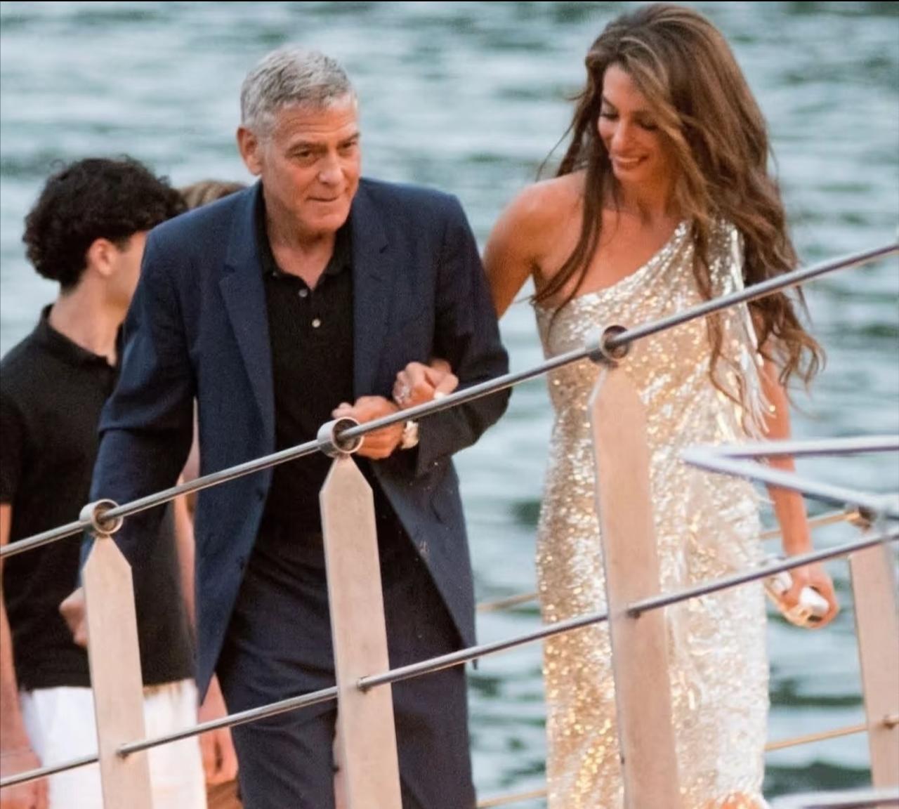 知名男演员乔治·克鲁尼和妻子Amal现身意大利科莫湖 画面中Amal还搀扶着老公乔治·克鲁尼,不知道是不是因为年龄大了,还是在船上走路不稳,据悉乔治·克鲁尼今年已经64岁了,按理说这个年龄还不算太老,走路应该是没有问题的。不过乔治·克鲁尼的头发已经花白,精神还是很不错的,而乔治·克鲁尼的妻子穿亮片裙身材还是很苗条。毕竟Amal才四十多岁,两人相差17岁。看上去还是很明显的。