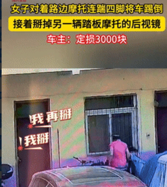 缺大德了!山东济南,一大妈看到路边有辆摩托车,二话不说就过去连踹4脚,将车给踹翻倒地,不料,做完这些后她还觉得不过瘾,又将另一辆踏板摩托的后视镜给掰掉,并踹在包里带走了,网友:她这是抽了哪门子的风 据AHTV第一时间8月2日的报道,事情发生在山东济南,大妈最开始是到一家超市里买东西,拿了一瓶水后就直接离开了。 可当她来到外面时,就看到路边停有一辆摩托车,可她不知道吃错了什么药,二话不说就过去,一连四脚将车给踹翻在地。 更无语的还在后面,在做完这些后,他有盯上了旁边的一辆踏板摩托,接着就过去将后视镜给掰掉。 随后她就拿在手里照镜子,欣赏自己的“盛世美颜”,并将后视镜给装进包里,接着就离开了现场。 当摩托车主后面赶过来时,就看到自己的爱车倒在地上,所幸附近有监控,还刚好将女子的所作所为给录了下来。 事后,经过检查摩托车的定损为3千块,至于车主是否有报警,暂且还不太了解,只希望她能这样去做。 讲真的,挺难理解这位大妈的行为的,连个前因都没有,就做出这种事情,对此也归结到她的坏,已经到骨子里了。 而对于这样的人,严惩是必须要有的,喜欢四处发疯就到牢里好好的反省,最好能关一辈子,省的再出来继续作妖祸害人了。 信息来源:AHTV第一时间 2025-8-2