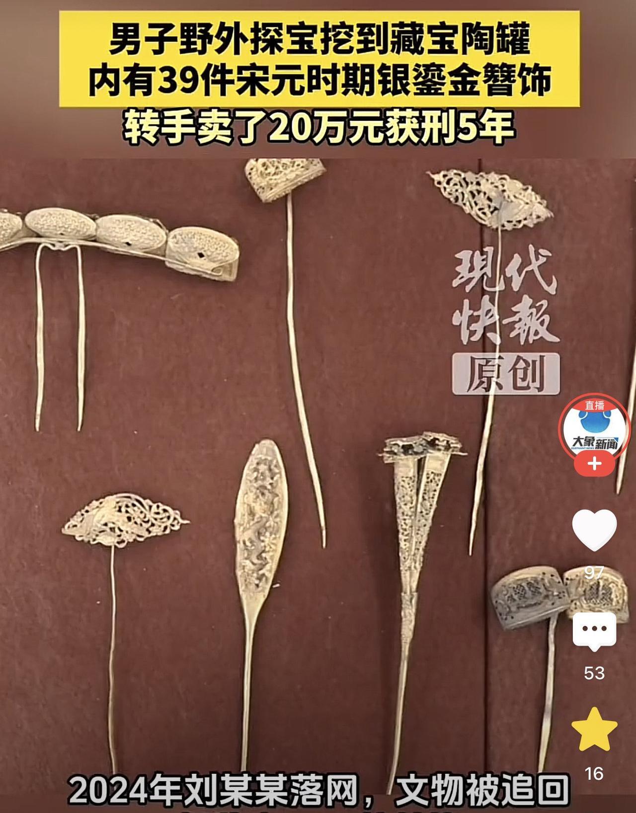 江苏,一男子拿着金属探测仪来到一干枯的水库边寻宝,结果还真的找到了一陶瓷罐子,罐子里藏着39件首饰,于是,男子将这些首饰以20万的价格卖了出去,结果男子却因此被判了5年,20万不仅罚没了,而且还罚了3万元,网友表示,天上掉下的馅饼你也接不住。 刘某看到网上有人拿着金属探测仪到处寻宝,于是自己也买了一个探测仪,起初他来到荒地探寻,结果只搜寻到一些破铁,看到村里的水库干枯了,刘某想着水库里说不定能有宝藏,于是便拿着探测仪去寻宝了。 果然,在一处淤泥里,刘某找到一个陶瓷罐,罐子里还有39件首饰,用水冲干净后刘某发现,这些首饰看起来不错,于是便将其带了回去。 因为之前认识一个古玩市场的朋友沈某,在沈某的帮助下,刘某将这些首饰以20万的价格卖给了王某,沈某因此还拿了1.88万的好处费。 可是,纸终究是保不住火的,最终还是案发了,刘某被抓获归案后,沈某也选择了投案自首,最终,刘某因倒卖文物罪,被判处了有期徒刑5年,沈某也因此判了3年。 事发后,网友表示,买的不说,卖的也不说,这件事情是怎么知道的? 有网友就表示,谁能做到守口如瓶,而且这个刘某也是一夜暴富,自己可能酒后吹牛说了,这个东西放家里十几年后,就说是祖传的,谁还能质疑。 也有网友表示,我是正常挖的,算是捡的,这是没有人要的,我捡到了卖了怎么还犯法了? 实际上,根据《文物案件解释》的规定,具有下列情形之一的,应当认定为情节严重:(1)倒卖三级文物的;(2)交易数额在5万元以上的;(3)其他情节严重的情形。 本案中,刘某不仅倒卖二级文物,而且数额在20万,无论那一条,刘某的行为都符合倒卖文物的行为,从而构成犯罪。 按照刑法第三百二十六条规定,以牟利为目的,倒卖国家禁止经营的文物,情节严重的,处五年以下有期徒刑或者拘役,并处罚金;情节特别严重的,处五年以上十年以下有期徒刑,并处罚金。 据此就不难理解为何刘某获刑5年了,可是,有人觉得,既然是挖的,捡的,原则上就是我的,我卖了为什么还违法? 根据《文物保护法》第五条明确规定,所有埋藏在中国土地、河流和海域内的文物,都属于国家所有。 而对于找不到主人的物品,通常称之为无主物,比如丢失的物品,或是扔掉的物品,对于扔掉的物品,捡到的人就能成为它的主人,这就是“先占”。 而对于丢失的物品,原则上也是要返还丢失人的,或者是交给警方处理,在公告之后依然没有人招领,那么就属于国家,所以,就算这些物品是藏在你家农田里,只要没有证据证明是你或者是你的前辈埋进去的,原则上挖出来就是国家的,而不是你的个人物品,因此,如果将其卖掉,原则上就成立犯罪。 对此,你对本案有什么看法? —————————— 关注我,带你评析法律热点,关注冷暖人生。 文章原创,抄袭必究 #头号创作者激励计划#