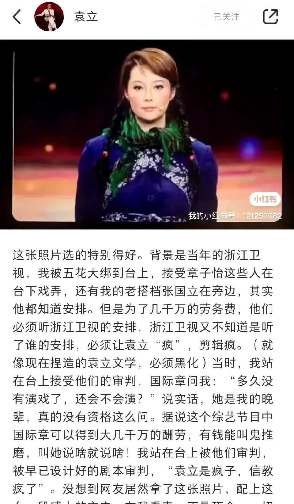 这个是袁立的账号? 她曾经参加浙江卫视的节目,啥也不知道吗?袁立是“被五花