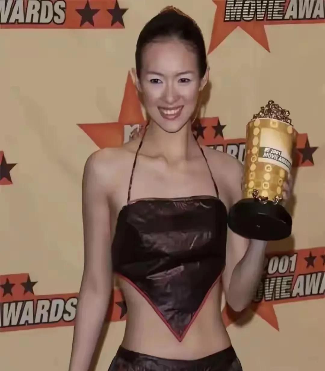 这组照片是章子怡最丑的穿搭了:当时的她,真是瘦到了极致,连后背上的骨头都清晰可见