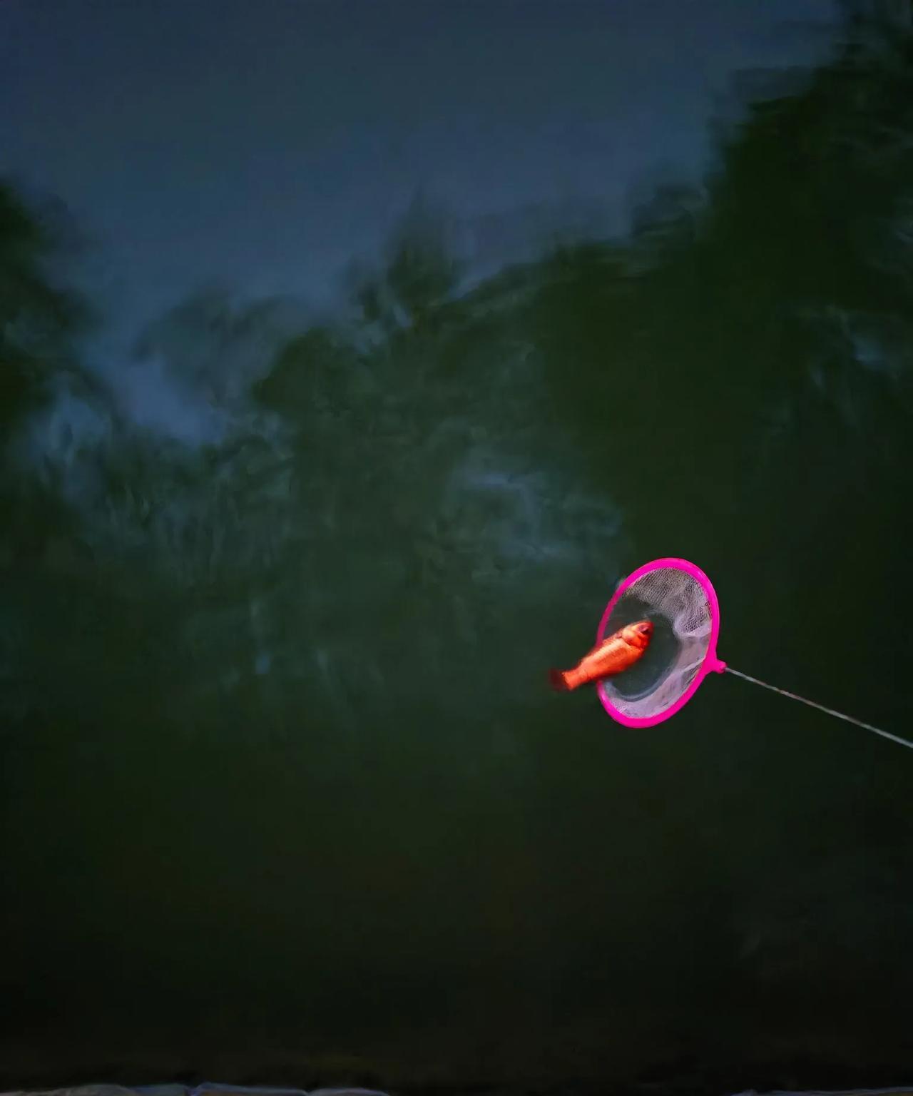 昨天晚上,吃过晚饭去走路,顺便把鱼缸里仅剩的三条金鱼捞上来,放在塑料袋里,带到古