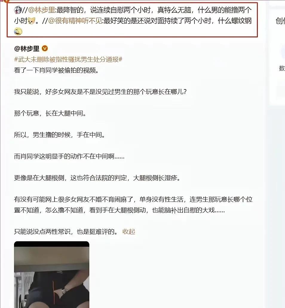 这届网友太厉害了,觉悟高,警惕性强,业务能力很专业。武大杨同学背后的NGO组织浮出水面。杨同学这哪是被性骚扰,她这是以自身做诱饵抓性骚扰,是故意制造事端的行为艺术。一个正常女学生,如果发现对桌男生有对着她抓下体的嫌疑,感觉被冒犯,正常的反应是躲开,毕竟图书馆那么大,空座那么多。如果男生跟过来,那就告他骚扰。杨同学却不,她是盯着肖同学看,还拍照,还搭讪,反复拍照录视频折腾一个小时,就怕视频录不清交不了差。除非是牺牲色相的卧底,不然没这么执着的。杨同学这是带着任务来图书馆钓鱼的。这后面一系列的事就好理解了。