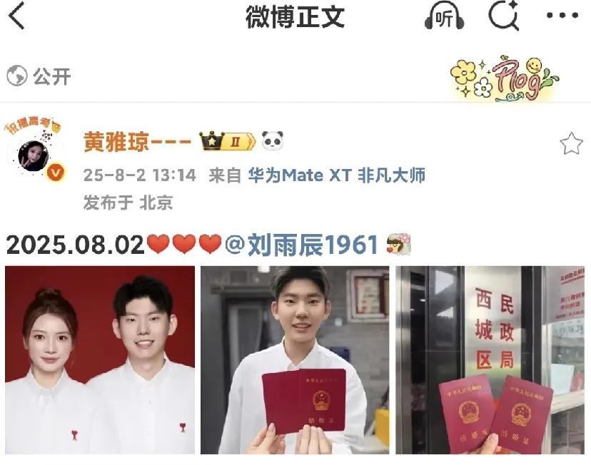 8.2日是个好日子! 黄雅琼、刘雨辰领证结婚! 图琼久久我已经说累了! 今天刚好