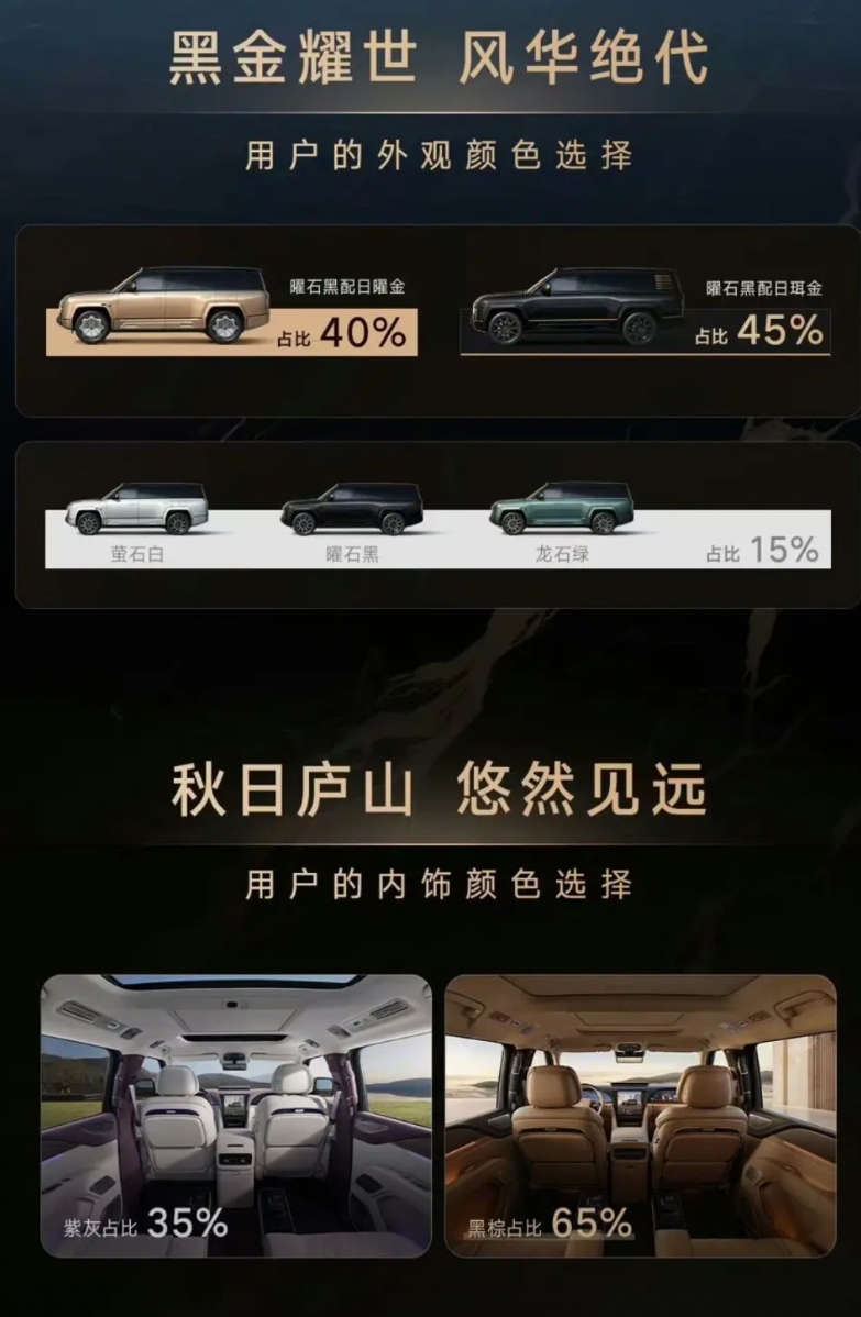 其实这个车一共有五种颜色,但是更多的人选择了主流的金色和黑色,这两种配色选择的人群达到了 85%,这也说明了愿意花130多万去买这个车的人,他们的个性更多的是追求沉稳大气!