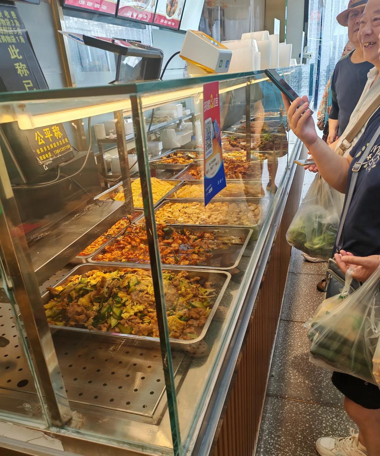 上午,东城区的网红兆军盛菜市场,进门看到排长队,一水儿的大爷大妈,被大爷洪亮的一声吸引:“您给来一份肥肠、一份豆腐”过去看了看,是新开了一家炒菜快餐,价格很实惠,可按份买或按斤称,感觉价格和社区食堂差不多,菜品也很多。