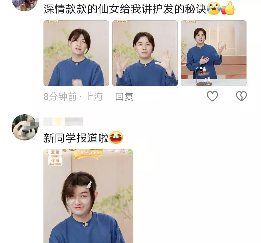 董董下播时千叮万嘱,你们可千万别把图往评论区发。传熙说,哥,来不及了,评论区已经被深情款款的董小姐攻占了。 这小刘海一戴,网友们笑富了,这也太俊了吧。 他要是女孩子,得迷倒多少人。 今晚的欢乐是董董给的,没想到一头短发,戴上假发片后,反差这么大,一个大老爷们瞬间变得清秀了,脸都小了好几分。 难怪这么受女生欢迎,董董说,旁边的土豆就有十几套。 今天也是第一次看董董卖,以前偶尔看到一些影视演员经常用,没想到现实生活中,需求这么大。 有网友说,什么时候让彪哥也卖一卖,我不敢想,彪哥戴假发的样子,哈哈哈! #头号创作者激励计划# #董董好可爱# #董董发型#