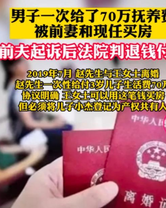 江苏南通,男子与妻子离婚时,一次性支付给3岁儿子70万抚养费,不曾想,前妻1个月后再婚,竟用这70万跟现任买房,男子起诉到法院,要求前妻退还70万本金和利息,前妻却不承认,法院这样判了! “我是给孩子的又不是给你的,拿着我的钱和现任买房是几个意思?”男子愤怒的说道,这声质问,道出了江苏南通一位父亲的满腔委屈与愤懑。 故事的主人公是江苏南通的李某(化名)和前妻张某(化名),两人曾有过一段婚姻,并育有一个可爱的儿子小宇(化名),然而婚姻生活并未如童话般美好,双方因感情破裂,最终决定走向离婚的道路。 离婚时考虑到儿子小宇当时年仅3岁,未来的成长、教育、医疗等都需要大量的经济投入,为了让儿子能在相对优渥的环境中成长,也为了减少日后因抚养费问题可能产生的纠葛,李某做出了一个重大决定:一次性支付给小宇70万元人民币,作为其成长至18岁期间的抚养费。 这笔70万元的抚养费对于普通工薪阶层的李某而言,无疑是一笔巨款,这可能是他多年的积蓄,甚至可能背负了部分债务,但他心甘情愿,只为了能给儿子一个更好的未来,在离婚协议中,双方明确约定,这70万元是支付给儿子小宇的抚养费,由前妻张某代为管理和使用,应用于小宇的日常生活、教育、医疗等各项开支。 李某以为这样的安排既尽到了自己作为父亲的责任,也为儿子铺就了一条平稳的成长之路,他怎么也想不到,这份沉甸甸的父爱,很快就会被前妻的“再婚喜讯”蒙上一层阴影,离婚手续办完后,李某努力适应着单身生活,并按照约定将70万元抚养费一次性打到了前妻张某的银行账户。 他心中虽有不舍但想到这笔钱能用在儿子身上,便也稍感安慰,然而仅仅过了一个月,李某从朋友处得知一个令他震惊的消息:前妻张某再婚了,而且是用他刚支付的那笔70万抚养费,和现任丈夫共同出资购买了一套新房。 这个消息如同晴天霹雳让李某瞬间火冒三丈,他立刻联系张某质问,张某起初还支支吾吾,后来见无法隐瞒,便承认了用这笔钱买房的事实,但她却认为,自己作为小宇的法定监护人,有权管理和支配这笔抚养费,买房也是为了给儿子一个更稳定的居住环境,并没有错。 他无法接受前妻的解释,在他看来这70万元是专门给儿子的抚养费,所有权属于小宇,张某只是代为保管,其使用权必须严格限定在儿子身上,现在张某不仅迅速再婚,还将这笔钱挪作他用,与现任丈夫共同购房,这无疑是将儿子的抚养费“充公”了,严重侵害了儿子的合法权益。 双方多次协商无果张某甚至拒绝返还这笔钱,无奈之下李某一纸诉状,将前妻张某告上了法庭,要求其返还70万元抚养费本金及相应的利息,这起案件在当地法院开庭审理,法庭上双方围绕70万元抚养费的归属、使用权以及张某是否构成侵权等问题展开了激烈的辩论。 法院在充分听取双方陈述,并审查了离婚协议、银行转账记录、购房合同等相关证据后最终法院判决:被告张某于判决生效之日起三十日内返还原告李某(代为保管给儿子小宇)抚养费70万元以及利息,这笔钱应存入以小宇名义开立的银行账户,由李某和张某共同监管,直至小宇成年。 这起案件的判决结果公布后,在网上引起了轩然大波,绝大多数网友对法院的判决表示支持和认同,一位网友留言道:“判得好!抚养费是给孩子的,不是给父母的‘零花钱’或者‘私房钱’,这位母亲的做法太不应该了,拿着前夫给儿子的钱去和现任买房,说不过去。” 另一位网友也表示:“深有同感!现在离婚的越来越多,抚养费问题也成了老大难,很多一方支付了抚养费,但另一方怎么花,支付方根本无从知晓,甚至确实存在被挪用的情况,这个案例很有代表性。” 这起事件不仅仅是一个家庭纠纷的解决,更是一次对抚养费性质、监护人职责的普法教育,它提醒着所有为人父母者,抚养费承载的是对孩子未来的承诺与责任,必须专款专用,任何试图侵占、挪用的行为,都将受到法律的制裁。 对此你怎么看?欢迎大家在评论区留言讨论。