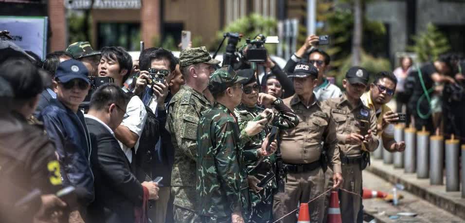 泰国政府组织23个国家的外交官和军事武官,以及泰国和国际媒体,到被柬埔寨军队击毁