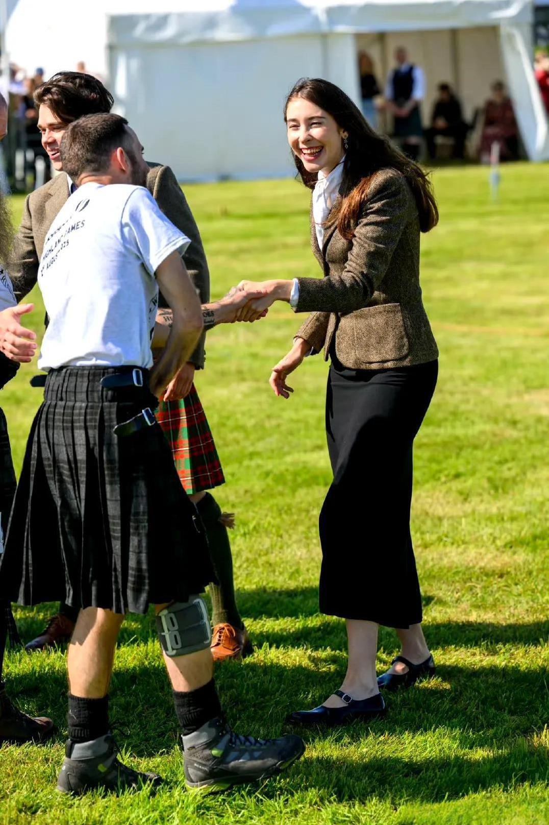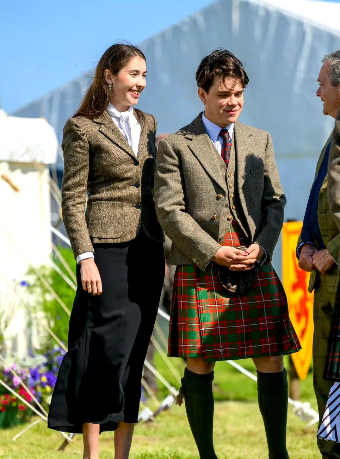 2025.8.2 英国国王查理三世及表妹莎拉·查托夫妇,表外甥塞缪尔·查托及女友埃莉诺·埃克瑟吉安出席苏格兰梅伊高地运动会。