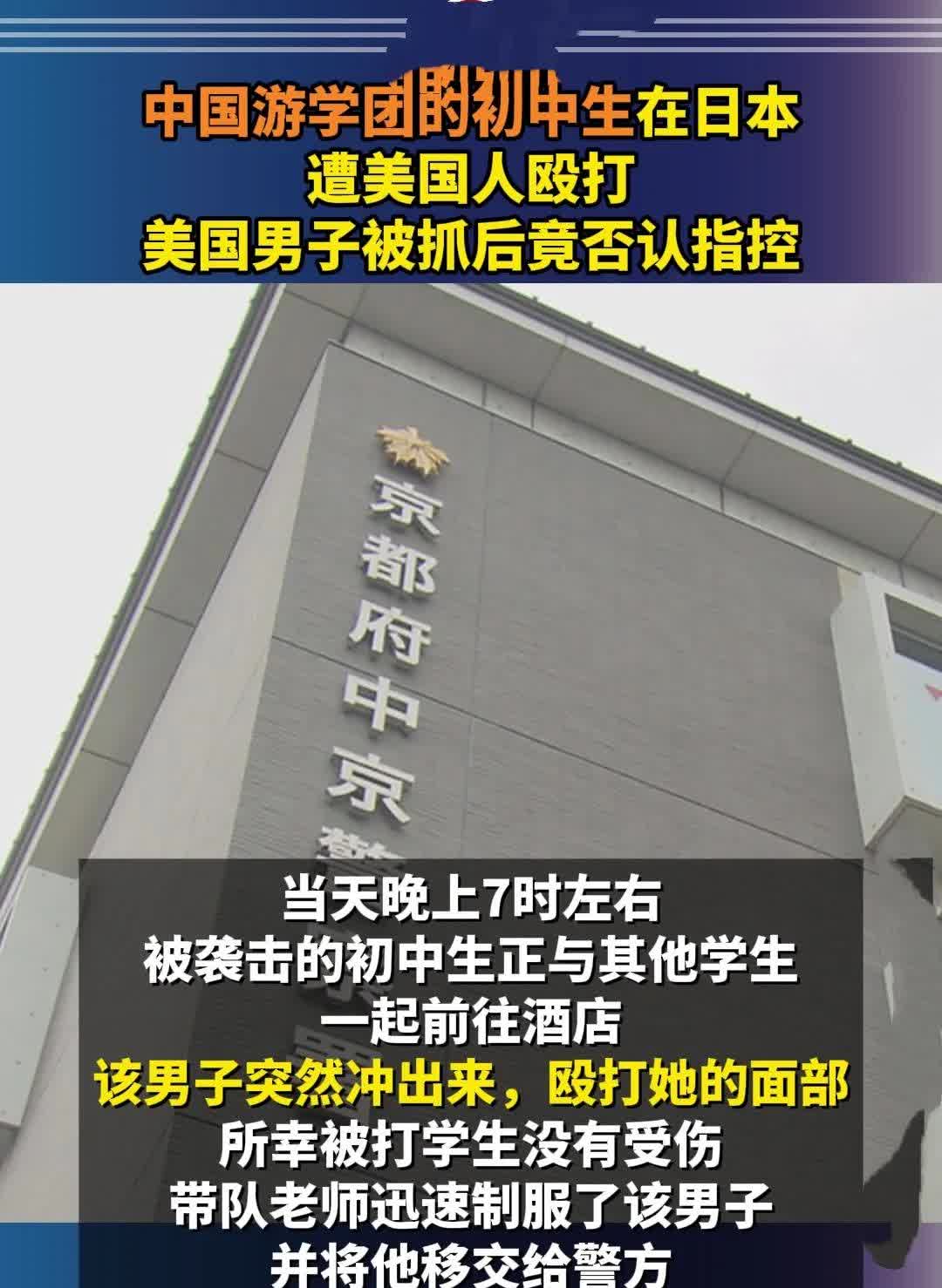 2025年7月26日,日本大阪街头,一名美国男子因与14岁中国籍初中生发生口角,竟当街挥拳殴打孩子,致其面部受伤。事发后,日本警方迅速以“伤害罪”将涉事男子逮捕。中国驻大阪总领馆紧急介入,敦促日方依法严惩,切实保障中国公民安全。