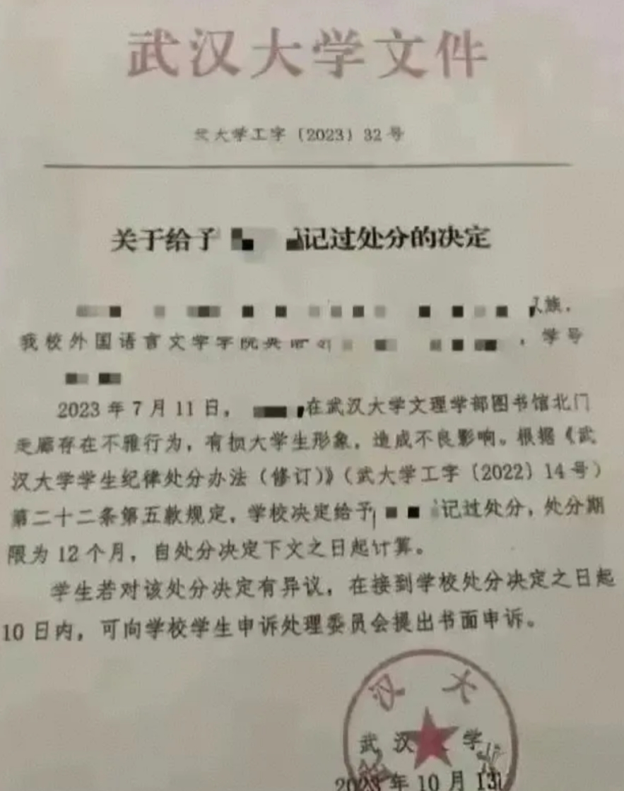 更离谱的是武汉大学。本来只是网上的是非争论,肖同学把那些皮肤病证明都公开到网上,舆论风向还不一定啥样。但是,所谓官方下场最致命,因为学校在极短的时间内做出处分决定,等于坐实了肖同学被指控的性骚扰,肖同学方连反应的机会都没有。后来肖同学被孤立、精神崩溃、家里老人死的死病的病,那份处分决定起到了助纣为虐的作用,甚至是决定性的作用。