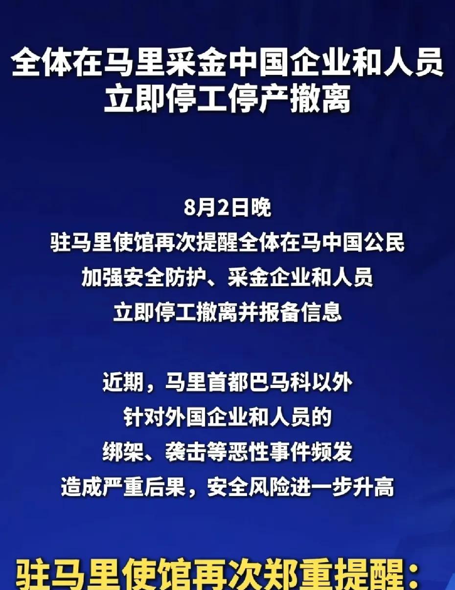 非洲西部的马里这个国家,是全世界最不发达的国家之一,贫穷落后,国家面积不算小120多万平方公里,人口只有2300多万人,是个地广人稀的国家,著名的撒哈拉沙漠就分布在这个国家。 北部是沙漠,南部是热带草原,常年高温少雨,黄金储量惊人,有着丰富的黄金。 经济依靠农业和黄金出口为主。 贫穷落后和内战一直困扰着这个国家,8月2日,马里反政府军称,击毙80多名俄罗斯瓦格纳雇佣军和几十名政府军。 中国驻马里大使馆紧急通知,所有在马里的中国公民,采矿企业立即停工停产撤离,看来马里局势要失控了,反政府军和政府军要大干一场了,马里的采矿企业,尤其是黄金采矿企业,大部分都是广西上林人过去的,这个时候财产是第二位的,安全才是第一。
