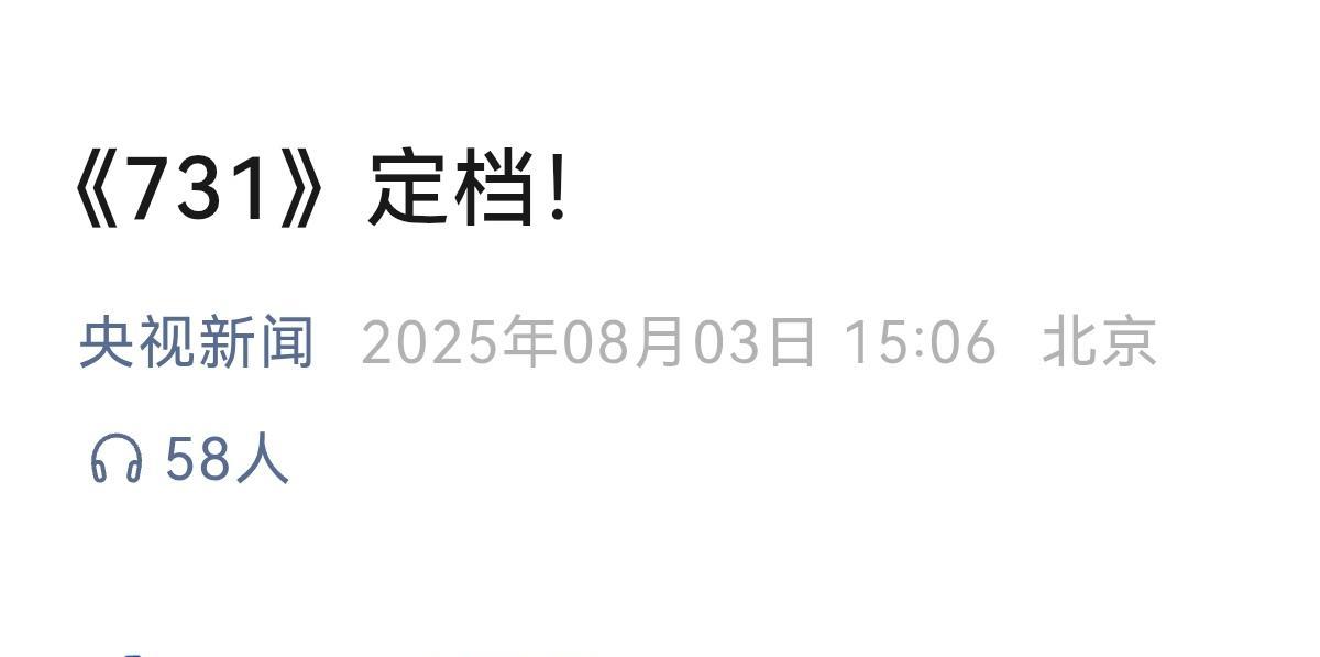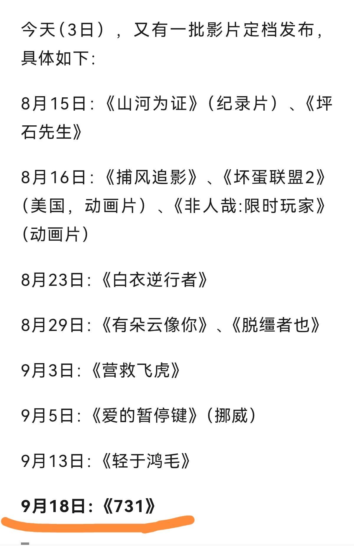 终于看到,电影《731》定档了!上映的日子是9月18日,更狠的档期,更有意义的日