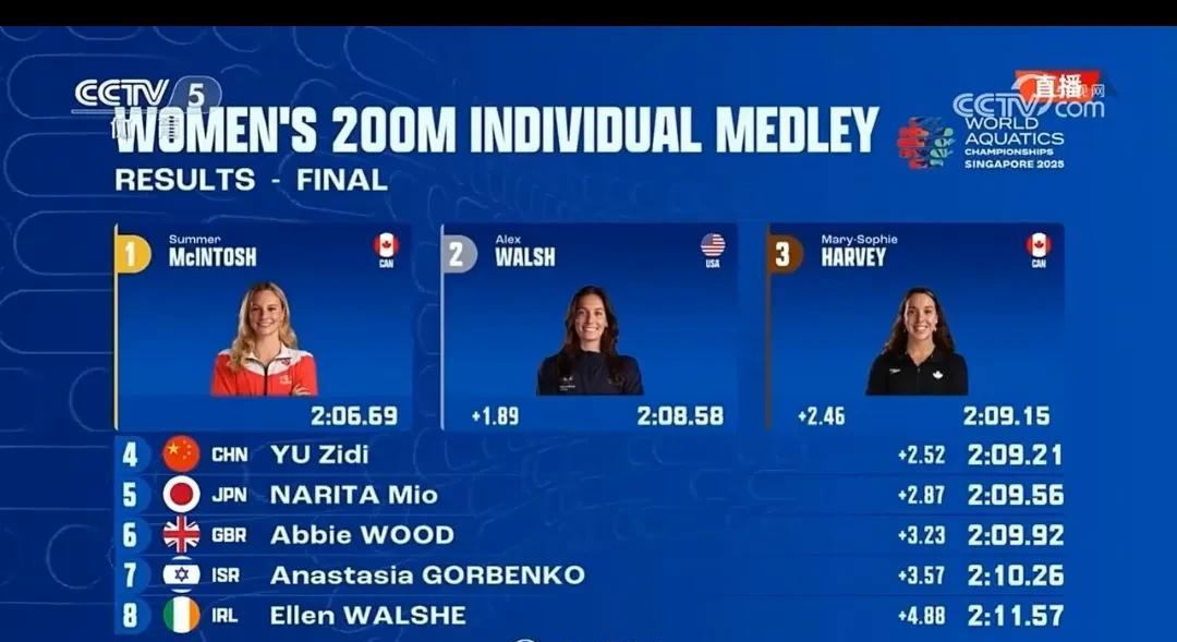 挡在于子迪未来道路上的高山——当今女子泳坛第一人:麦金托什 12岁的于子迪结束了