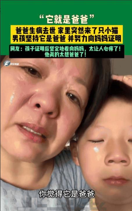 泪目!河南,男孩睡觉梦到了生病去世的爸爸“幻化”成了一只猫,结果第二天家里还真的来了一只小猫,男孩坚称它就是爸爸,妈妈不相信,男孩就证明给妈妈看,结果妈妈都不敢相信自己的眼睛!网友感叹:“科学解释不了的事就交给爱吧”。 在河南一户普通人家,一个男孩抱着一只猫,眼神里却看不见孩子初见萌宠的欣喜,反而透着一股不属于他这个年纪的庄重。 这个家庭不久前才经历了一场撕心裂肺的告别。男孩的爸爸因病离世,给这个家留下了一个巨大而冰冷的窟窿。大人尚且难以承受,更何况一个孩子。 他也许还不完全明白“死亡”到底意味着什么,可心里那种空落落的感觉,那种再也见不到爸爸的恐慌,却是真实而刺骨的。极度的思念下,男孩晚上做了个梦,梦里爸爸并没有走远,而是变成了一只猫。 谁知第二天,一只瘦弱的小猫竟真的毫无征兆地出现在了他们家门口,仿佛是专程为了回应那个悲伤的梦而来。男孩立刻认定,这就是爸爸,是他朝思暮想的爸爸回来了。 妈妈起初只当这是儿子思念过度的臆想,认为这不过是只碰巧路过的野猫。她心疼儿子,却无法接受这个听起来“太邪乎了”的说法。可男孩这次异常执着,他较上了劲,非要让妈妈相信自己的判断。 看着儿子那份不容置疑的坚定,妈妈的心也开始动摇。她望着那只小猫,再看看儿子恳切的眼神,悲伤再次涌上心头,她也恍惚觉得,或许真是丈夫放心不下她们娘俩,回来看她们了。 就在这份理性与情感的拉扯中,男孩做出了一个决定性的举动。他小心翼翼地抱起小猫,用稚嫩却无比认真的声音对着它说:“你要是爸爸,下来就摇摇尾巴行不?” 话音刚落,那小猫竟真的“喵”了一声,自己从男孩怀里跳到地上,对着他们,摇起了尾巴。 这一幕,彻底击垮了母亲心中最后一道防线。她呆住了,所有的怀疑、悲伤、思念在这一刻交织成决堤的泪水。她一把抱住儿子,母子俩相拥而泣。 那泪水里,有失去亲人的痛,但更多的是在绝望中抓住一丝慰藉的释然。男孩在证明之后,也只是坚定地看向妈妈,眼神里没有炫耀,只有一种“你看,我没有骗你”的默契。 那一刻,这只小猫到底是不是爸爸变的,已经不再重要。重要的是,他们的信念找到了一个交汇点,一个可以安放悲伤的出口。 “心里太苦,得找个地儿搁那份疼”。当巨大的悲伤无处安放时,人总需要抓住点什么来寄托念想。这只小猫的出现,恰好就成了那个完美的“念想的窝”。它让无形的思念变得可以触摸,让压抑的情感有了可以倾诉的对象。 对这个家庭而言,选择相信,是一种必需的心理自救。就像在漫长的黑夜里点亮一盏小灯,虽然微弱,但足以照亮前行的路。 有人感叹:“科学解释不了的事,就交给爱吧。”在这个故事里,爱的真实性,远远超过了事实的真实性。 有人翻出男孩爸爸生前的照片,发现竟和小猫的长相有几分神似。这或许又是巧合,但当人们选择相信时,便总能找到更多强化信念的“证据”。 从那天起,这只小猫的身份彻底变了。它不再是宠物,而成了这个家庭一枚独特的印记,一个关于父爱的、活着的象征。想爸爸的时候,娘俩可以抱抱它,跟它说说话,心里的苦闷便能得到极大的舒缓。 这个小生命的存在,用一种无声的方式,持续疗愈着他们的伤痛。毕竟,日子还得继续过下去。带着对逝去亲人的思念好好生活,才是对天上亲人最好的告慰。 说到底,这个故事的价值不在于它的真伪,而在于它所承载的那份深不见底的爱与思念。那份愿意相信奇迹的“傻劲儿”,那个证明后坚定的眼神,以及那截恰好摇动的猫尾巴,共同编织了一个关于失落与治愈的美丽寓言。 如果科学与逻辑无法慰藉深不见底的悲伤,那么,用一个充满爱的“童话”来填补内心的空洞。