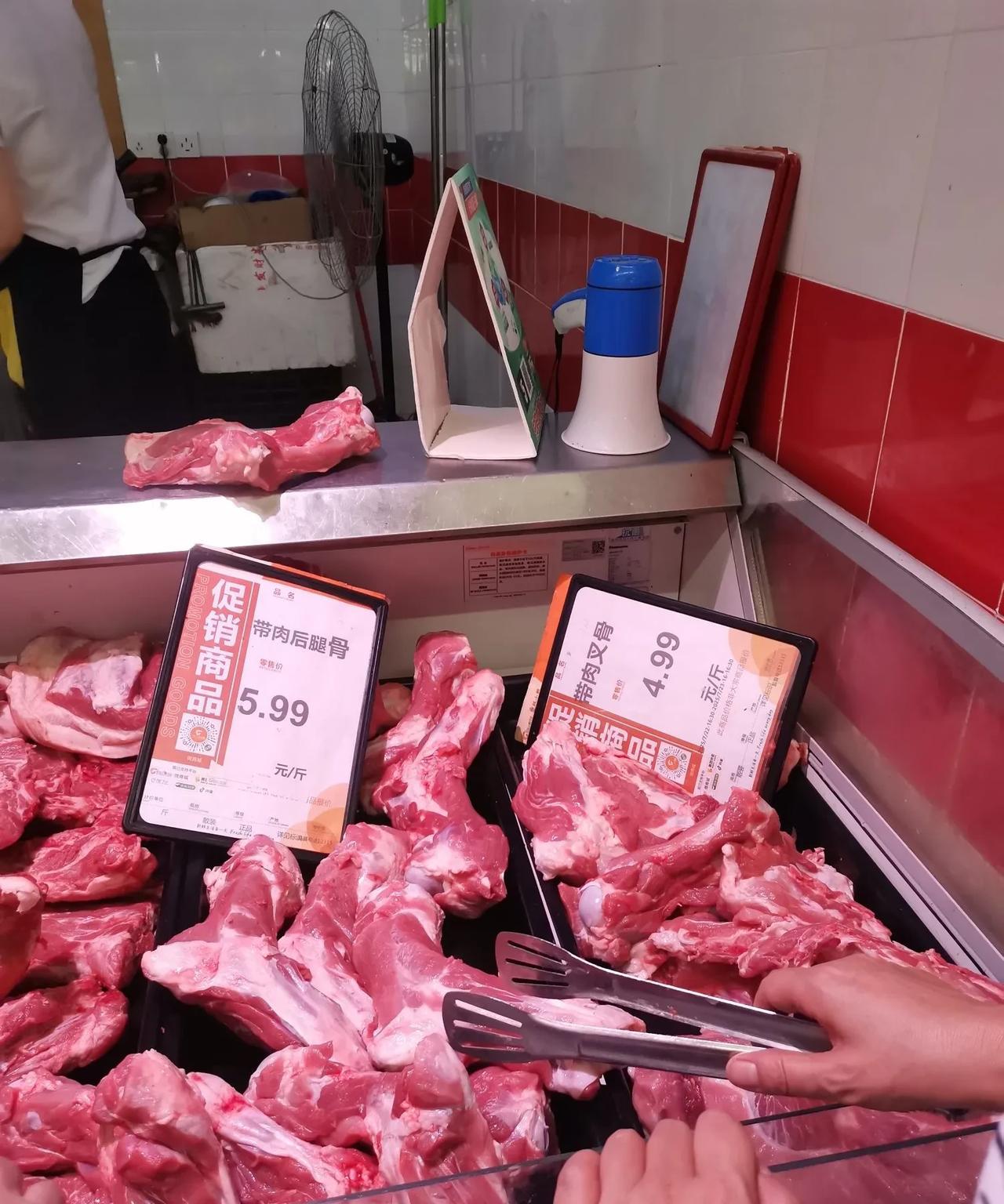大家看看我们这超市的肉和排骨是真的很便宜啊。 新鲜排骨19.9块钱一斤,筒子骨也只要五六块钱一斤,这些肉和排骨都要比菜市场便宜很多。 怪不得每天早上来超市买肉的顾客都特别多。