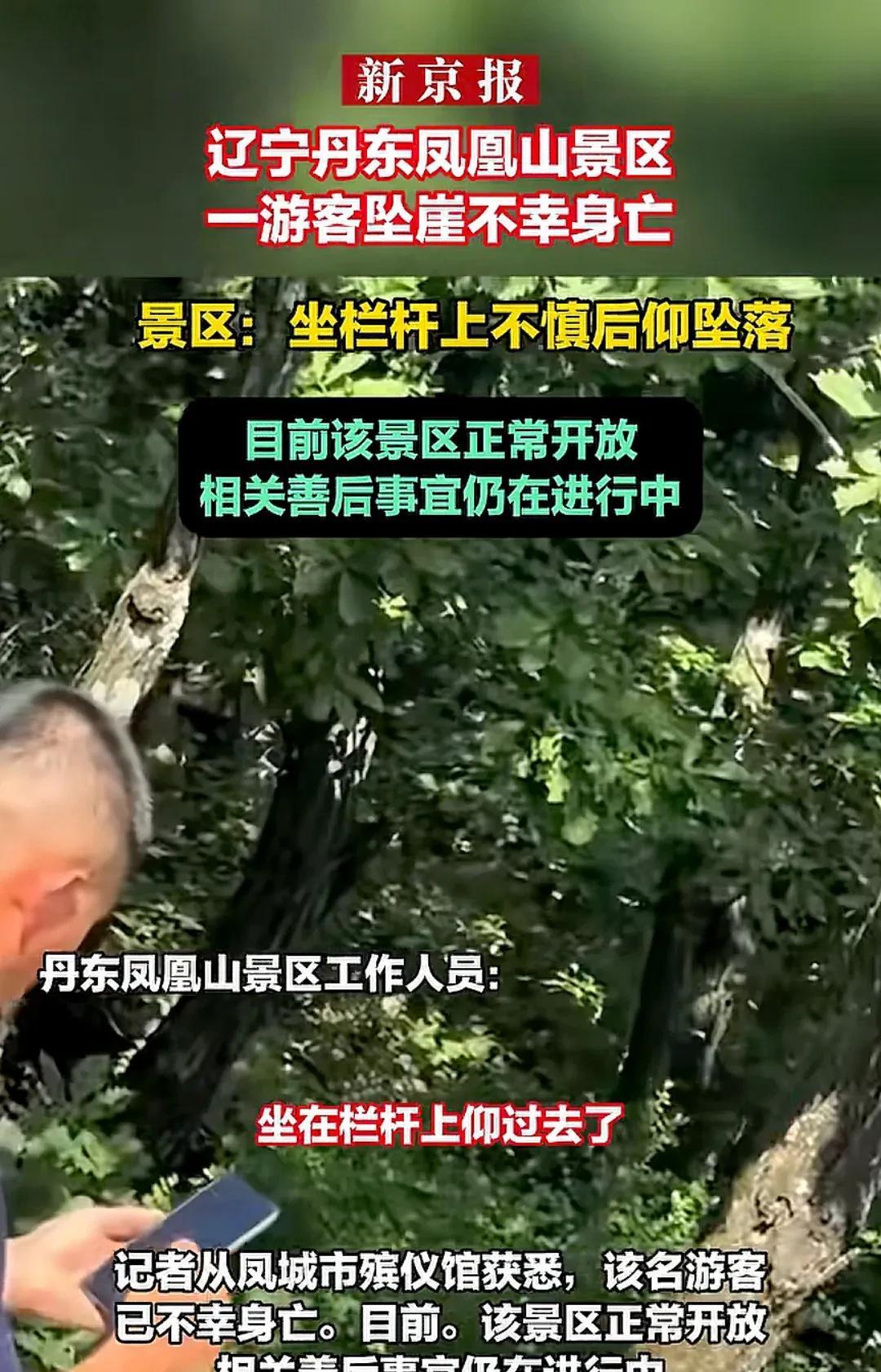 8月2日,丹东凤凰山。一名游客坐在栏杆上仰过去,找到时不幸身亡。 凤凰山的栏杆就