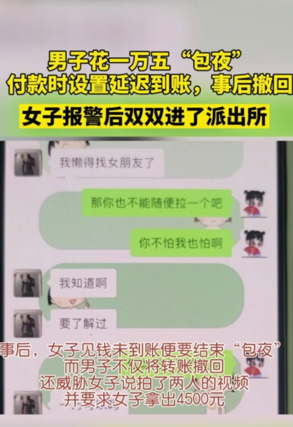 浙江,男子花15000约女大学生“包夜”,完事后女生发现钱是延迟到账。她气得直接走人,男生见状立刻撤销了转账。最终女子选择报警,双双进了看守所!