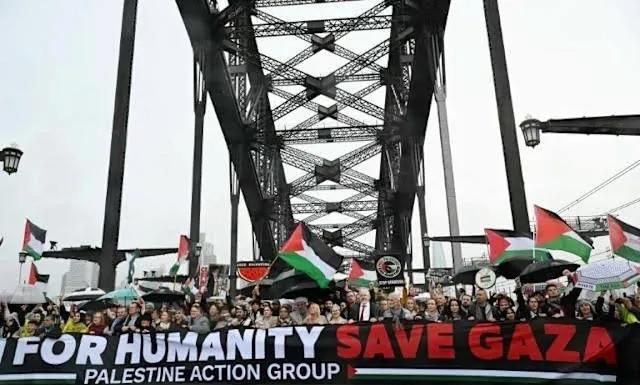 悉尼突然爆发大规模声援巴勒斯坦游行,超过十万名民众参与其中,记者在人群之中拍到了
