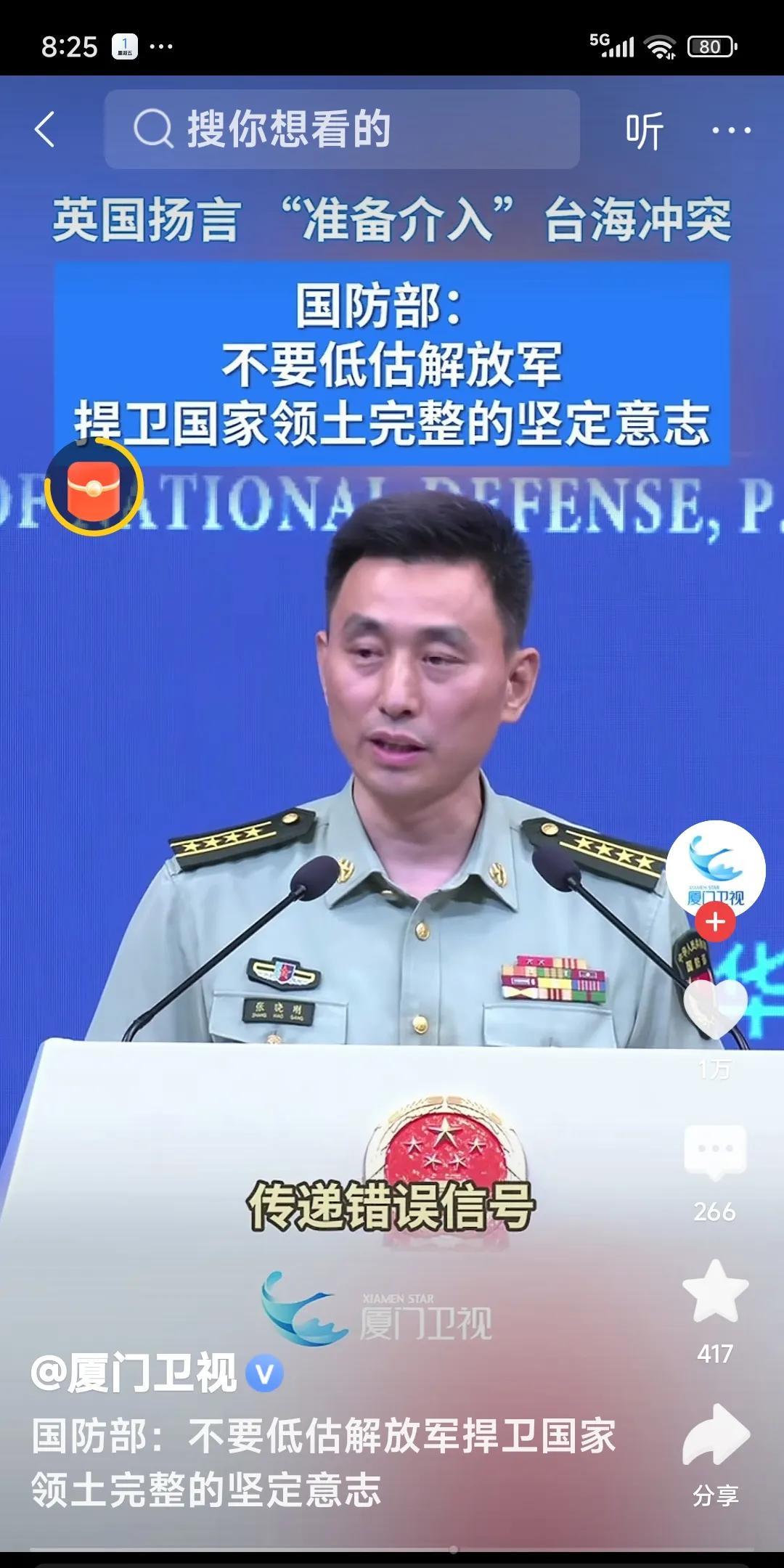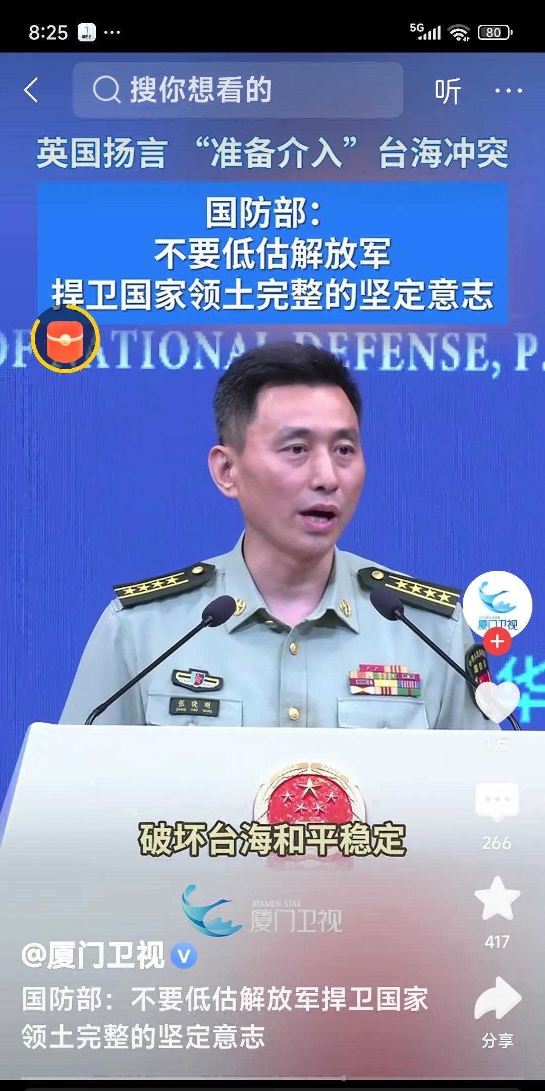 英国扬言准备介入台海冲突,国防部:不要低估解放军,捍卫国家领土完整的坚定意志。网