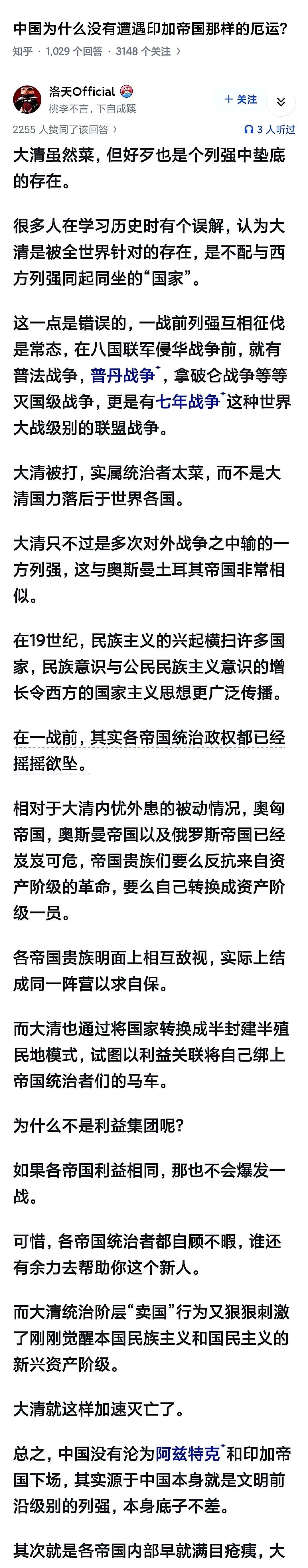 大清当年虽然菜,但直到大清灭亡,还算保持了一个大帝国的版图,没有失去外蒙古的大清,仍然拥有1100万平方公里的土地,也算是一个列强当中,排名靠后的国家。 要知道大清末年,还收回了新疆,收回了西藏,还派兵去越南作战,也派兵去朝鲜半岛作战,有赢也有输。但总体来说,该打的仗,还是要打,没有说是完全衰弱。就是大清的余威还在,只不过后续出现了一系列的问题。 大清灭亡以后,民国刚成立五年。接着派了接近20万劳工,去欧洲参加一战,也算是一战的战胜国之一,得到了不少的利益,都是没什么问题。 总体而言,当时的国际社会,除了几家列强之外,大多数都没有开化,都还是殖民地,他们更没有所谓的尊严与不尊严,大多是处于被欧美列强国家统治当中。 就像东南亚国家,除了泰国之外,基本上都被欧洲列强所控制,印度半岛就别提了,中东地区也是,非洲更别提。美洲地区都是独立的早,但是美洲地区太偏了,经济发展都比较落后。 所以大清末期,虽然没有那么强大,但至少还是保留一个独立国家的样子。博主这样说,并不是大权有多好,而是说当年咱们实力确实衰弱了,但仍然还是一个大国的样子,至少还能够有点实力,虽然不多。 总体而言,大清还是有一定的实力在那放着呢,这是实话,可惜大清战败的次数多了点。