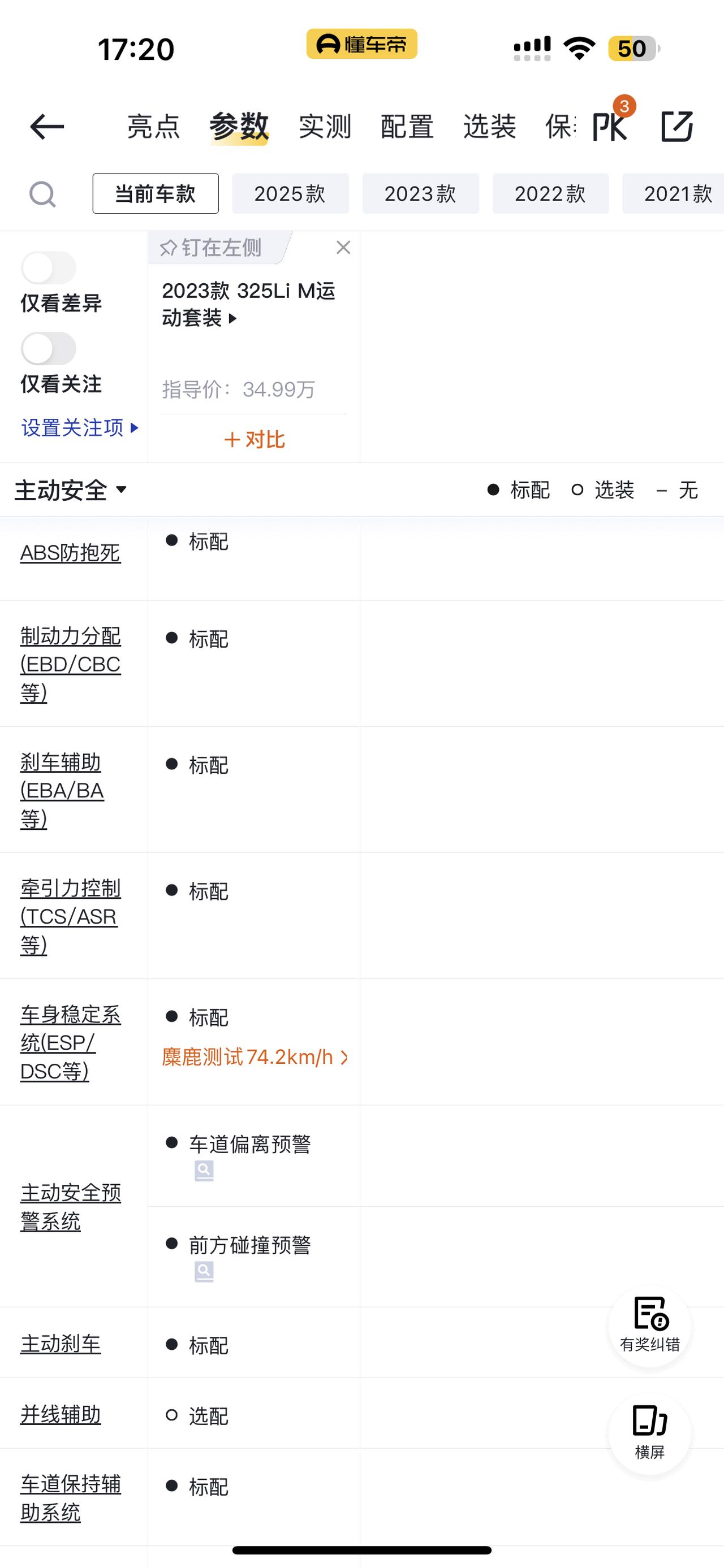 先说结论,对比现在的新能源车来说,是的,3系的辅助驾驶约等于没有。 官方配置中也能看到,G28的宝马3系标配是L1级别的辅助驾驶功能。相较于现在动不动的L2.999的新能源车来说,还是需要驾驶员集中精力去驾驶的。 那么宝马3系的L1在日常驾驶中,真的那么不堪吗?我觉得是完全够用的,一个定速巡航、一个车道偏离,几乎能够覆盖我的日常行车需求。 先说定速巡航,有看过我上一篇帖子的朋友应该都知道,我高速通行的频次是非常高的,而且动不动就是400多公里的长途。宝马的定速巡航虽然没有标配ACC,只有常规的定速和加减车速,简直普通得不能再普通了。 但是依旧能够让我在长途驾驶的时候解放一下双脚,特别是宝马的雷达太灵敏了,检测到前方车辆减速或者急刹,也会迅速开启主动刹车功能减速并推出巡航控制,保证驾驶员有足够的反应时间进行回避。 这是我认为宝马的辅助驾驶级别虽然是L1,但是依旧能够覆盖我日常通行的需求的最主要原因。 第二个方面就是自动泊车,这简直是我这个侧方停车困难星人的福音。你们懂一个路边车位停不进去,屏幕上突然弹出来自动泊车功能的提示的那种救赎感吗 而且宝马停车比我停的好,板板正正的,而且还不用担心开不出去,宝马还有自动驶离停车位的小功能(有多少车友知道这个小秘密🤫) 我也体验过新能源车,不得不说,在辅助驾驶这一个板块,宝马3系是不够看的,也许5系7系能够和它们掰掰手腕。但是也没有那么不堪,传统燃油车注重工业品质,开着舒服,稳当,安全,这是所有车企在生产时统一的标准。 大家也来说说,平常你们用辅助驾驶多吗?