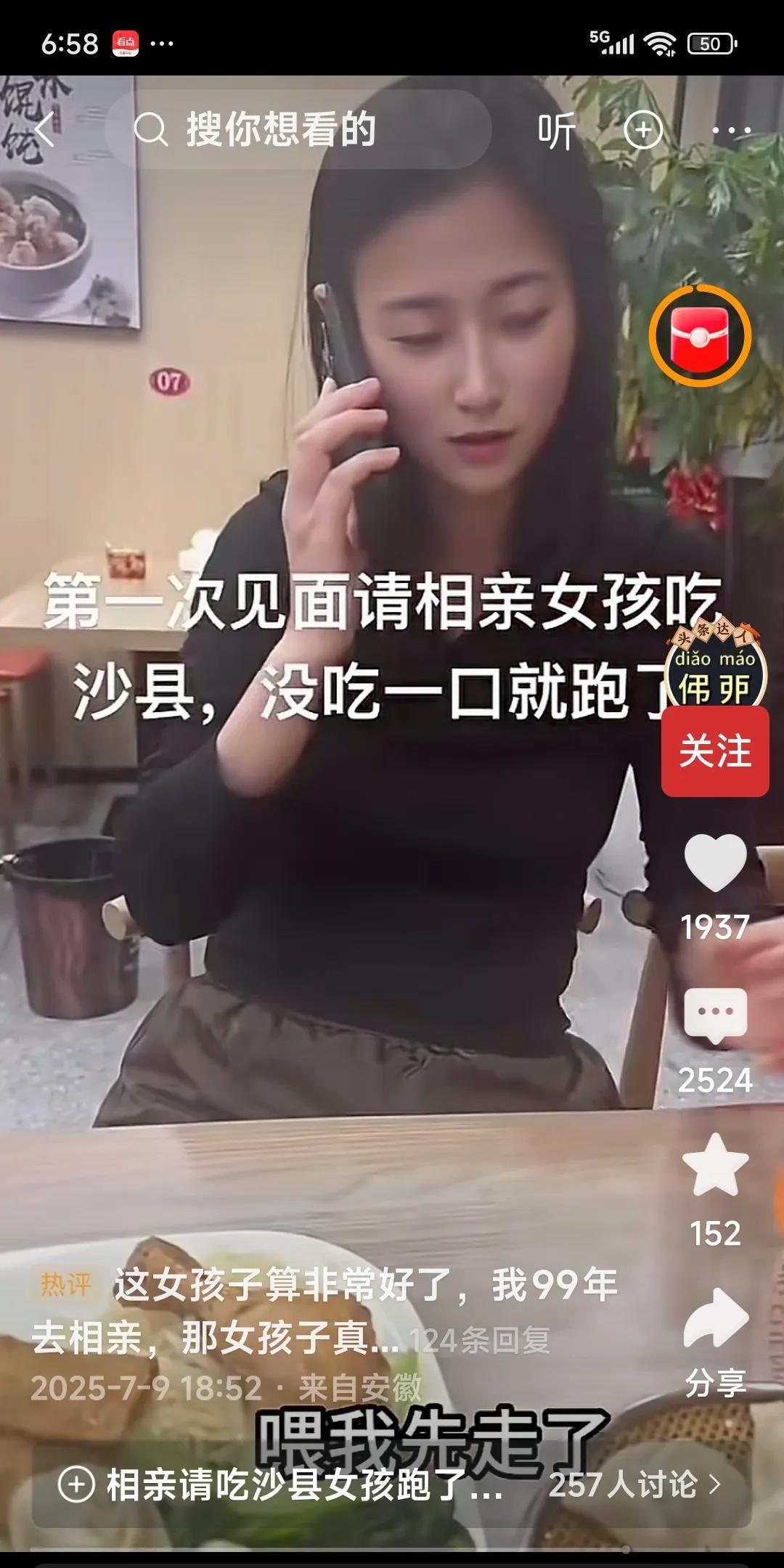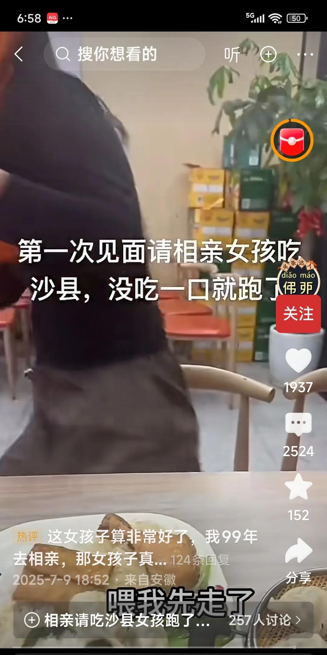 相亲不能吃沙县小吃吗?第一次见面请女孩吃沙县,没吃一口就跑了。网友说:没有家教,没有看上,为什么还去吃饭?最让人讨厌的是吃饭看手机,最后走时还把花儿带走了。有的人说:我来给你解释她走的原因:第一次见面请吃沙县小吃,说明你没实力,没达到她的预期。二用你的筷子在人家的菜上动来动去,说明你不懂礼数。三。有可能外表不好看,不是她的菜。四干吗拿手机拍人家不尊重人。有的人说:王思聪请她去吃泡面,她都乐意吧!可能还会说人家接地气没架子,大家说是这样的吗?