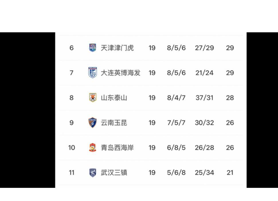 泰山队最新积分榜已经来到第8位,第19轮的失利,直接被身后的浙江绿城、天津津门虎