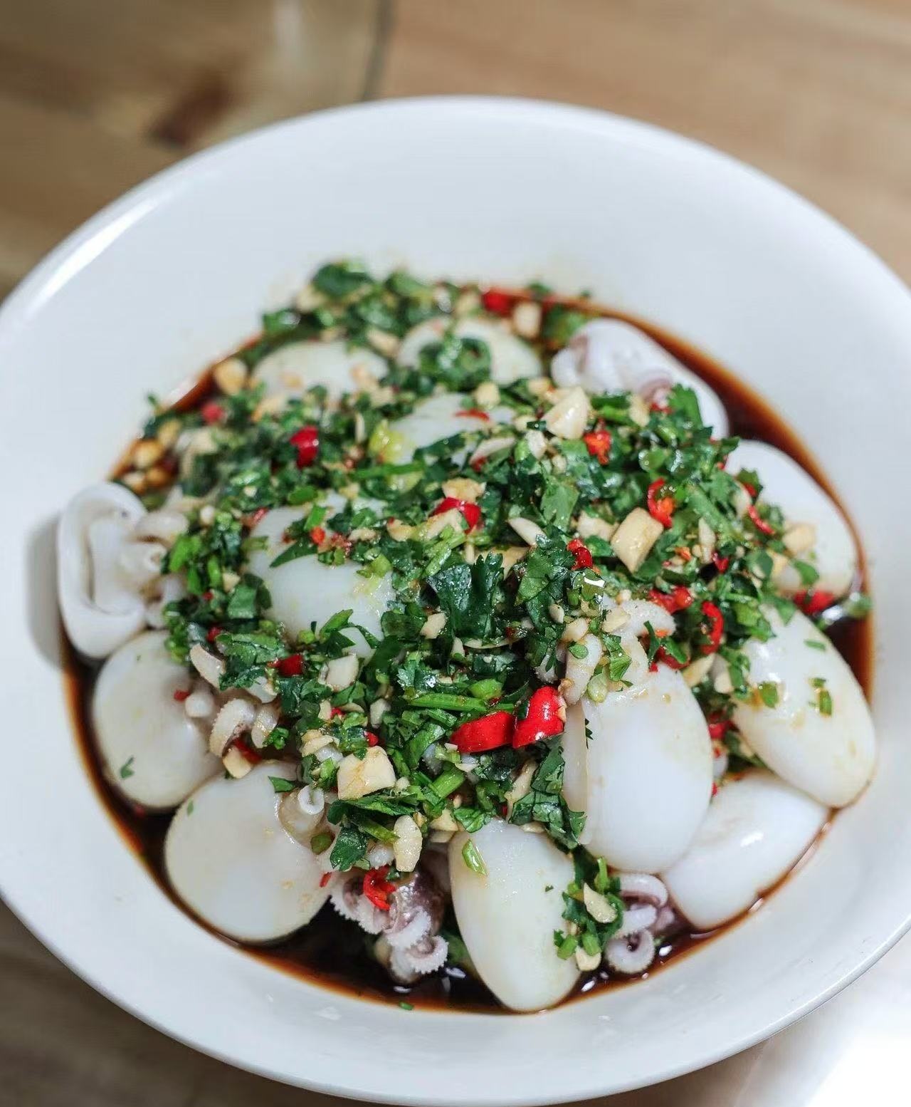 2️⃣.捞汁墨鱼仔,直接白灼,吃起来脆、嫩、微冲鼻的芥末汁,一口好过瘾!