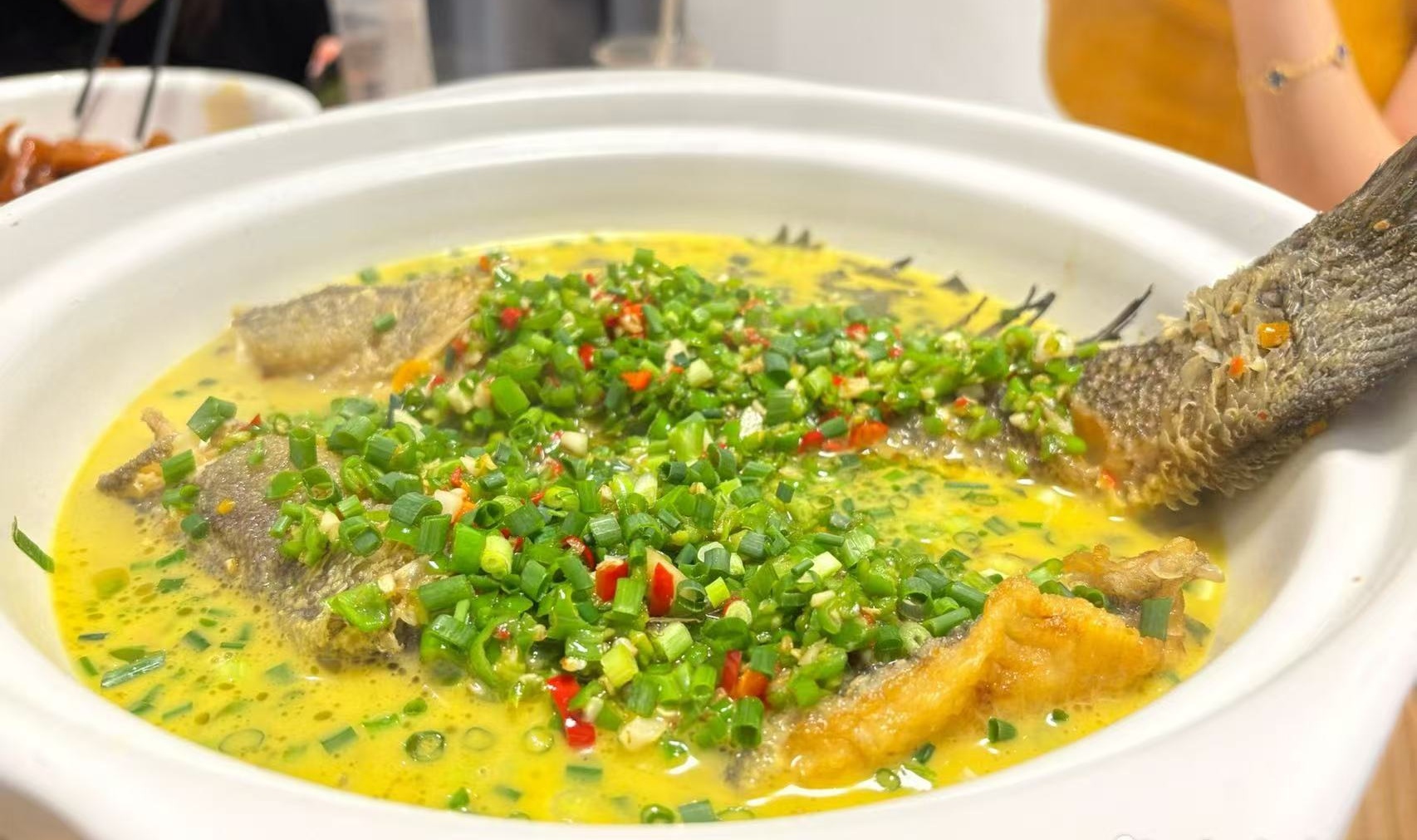 4️⃣.青椒鳜鱼,表皮被煎制得香酥、和湖南辣椒红烧,口感辣而鲜嫩。
