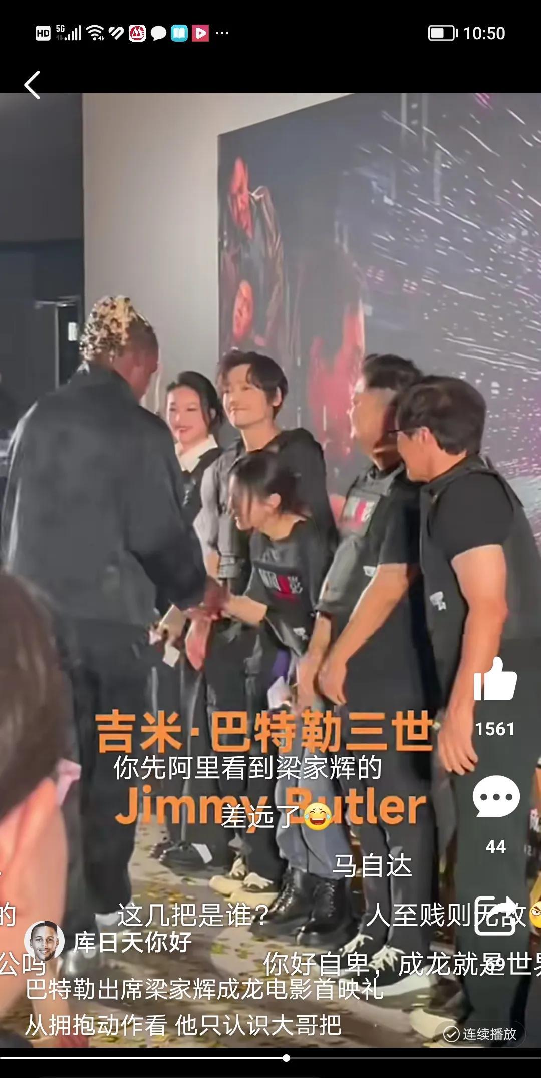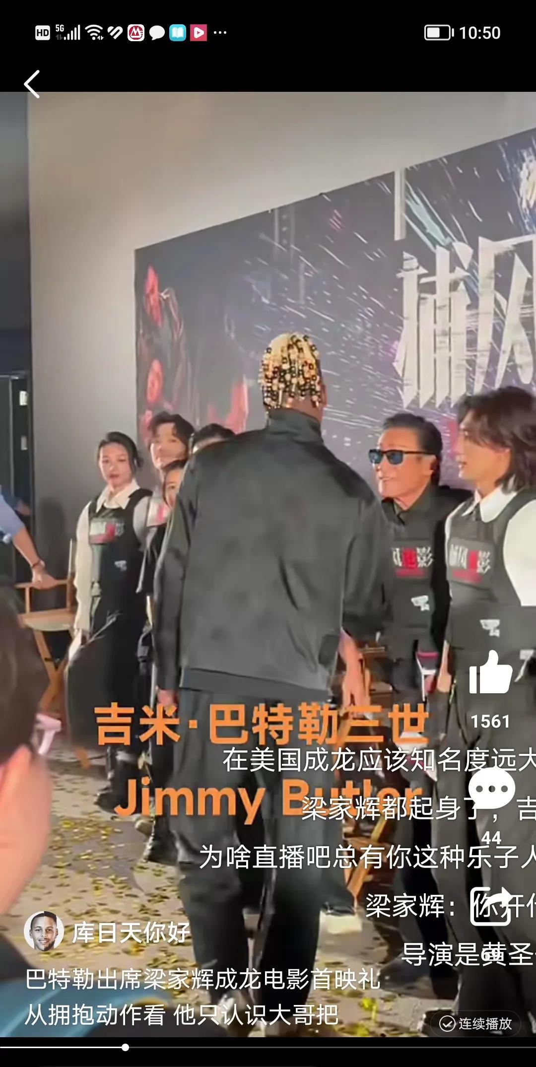 NBA硬汉巴特勒中国行!豪放大方送成龙大哥电影众主创每人一双篮球鞋! 有点意外的惊喜!正在进行中国行的勇士球星巴特勒现身成龙新电影《捕风追影》的首映礼现场,为大哥新片打Call。