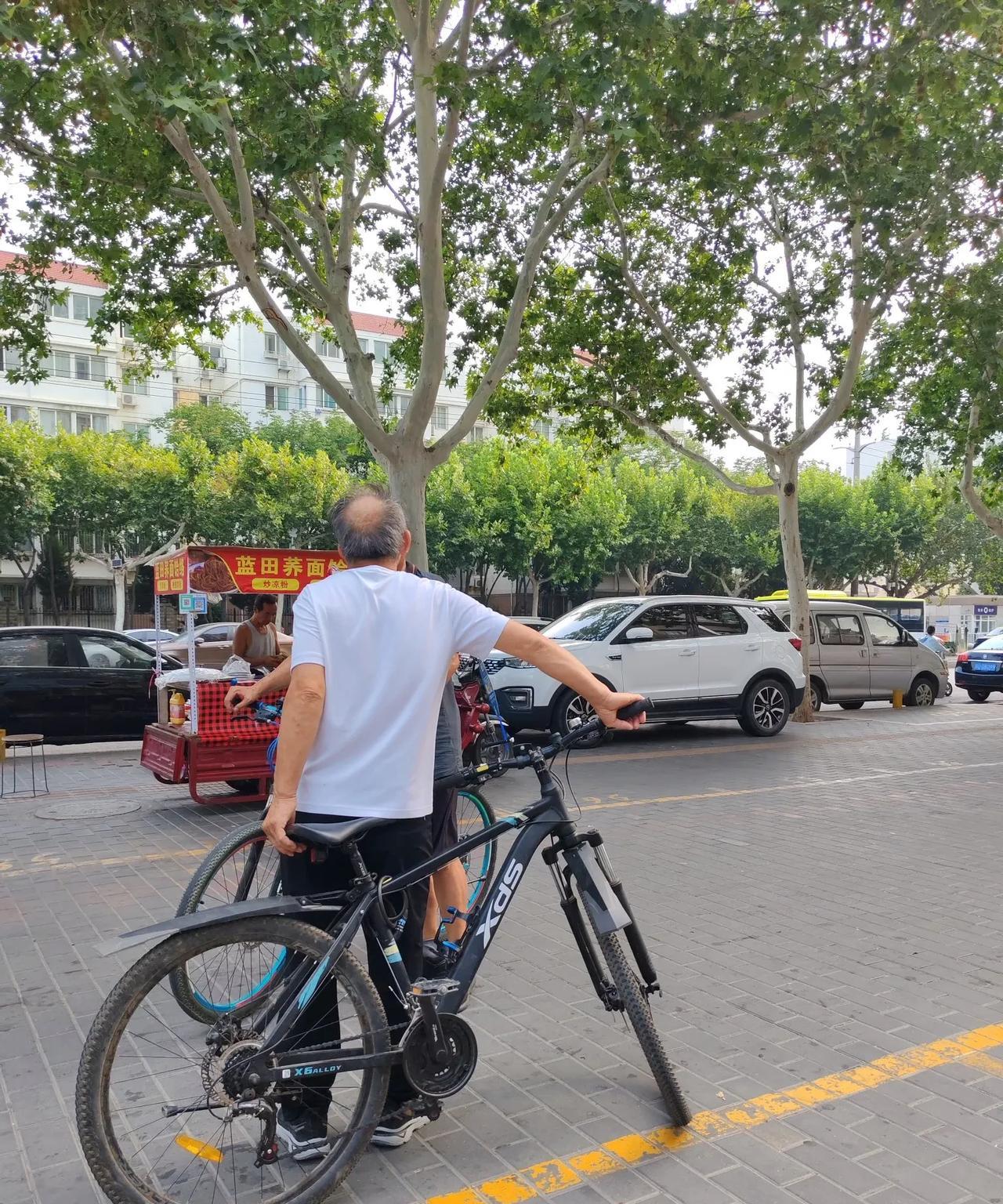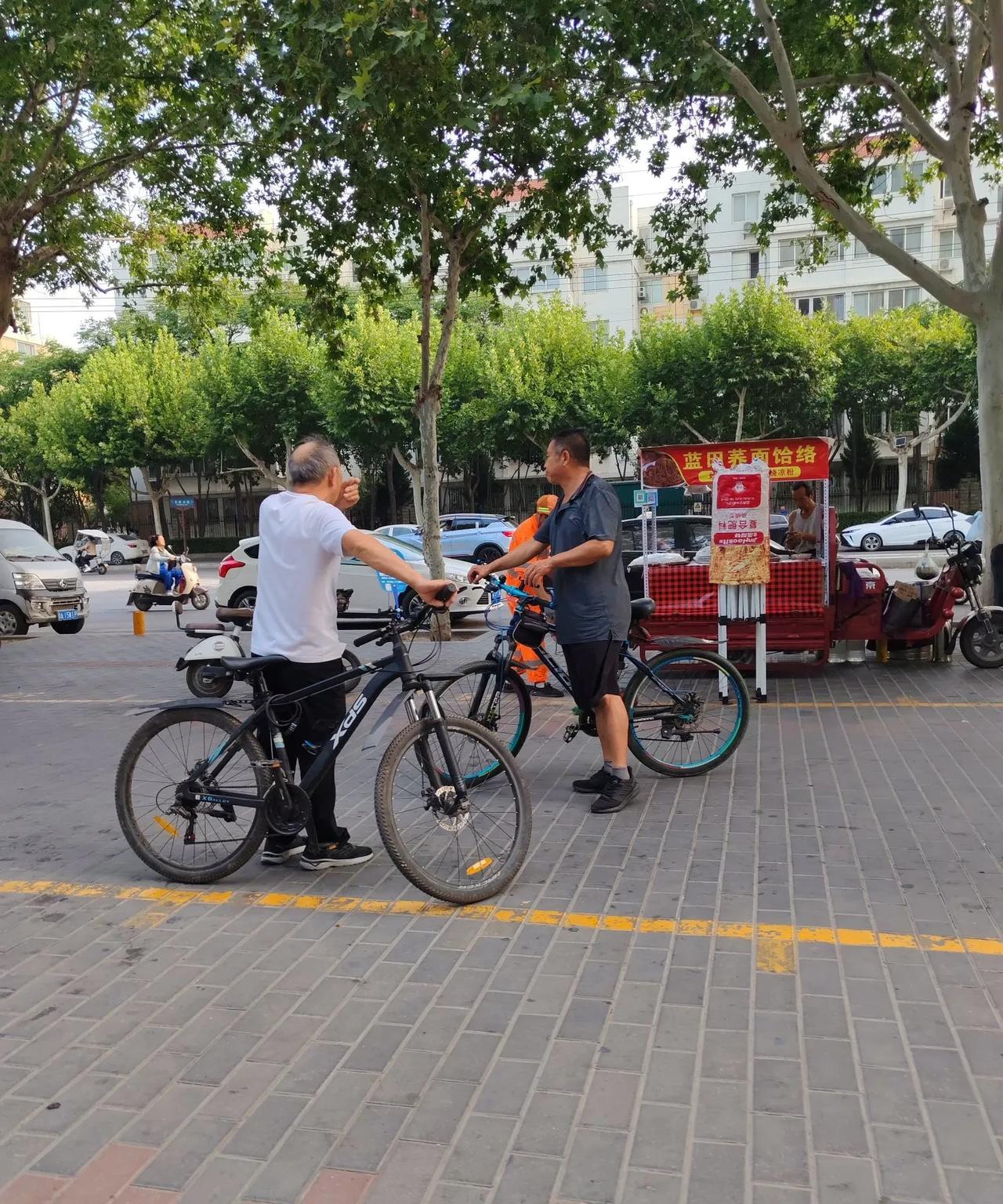大叔的生活真精彩。 8月4日,我再来陕汽车城,8点半路过马家湾,走在长庆大街上,正好碰到两个骑行大叔。大叔以为我是本地人,向我问路。 这两个大叔一看就是退休的,至少60岁以上,精神矍铄,一人骑着一辆自行车,告诉我他们是早上6点多从玉祥门出发,一路骑行过了渭河大桥,来到了马家湾,想继续往泾河新城方向行进,一路走,一路逛,准备骑到茯茶小镇去,打听怎么走。 茯茶小镇我倒是知道,以前开车去过,但那时候走的是高速,至于从马家湾走,我就不知道具体路线了,只好让他们去询问路边的清洁工或者摆摊人,本地人肯定清楚。 西安这么热的天气,这两个大叔还能坚持骑行,不得不服这精气神,或许就是生活的热爱可抵一切吧,不过也暗暗的为他们操心,高温天气一不小心就会中暑,最好还是减少运动,锻炼要量力而行。