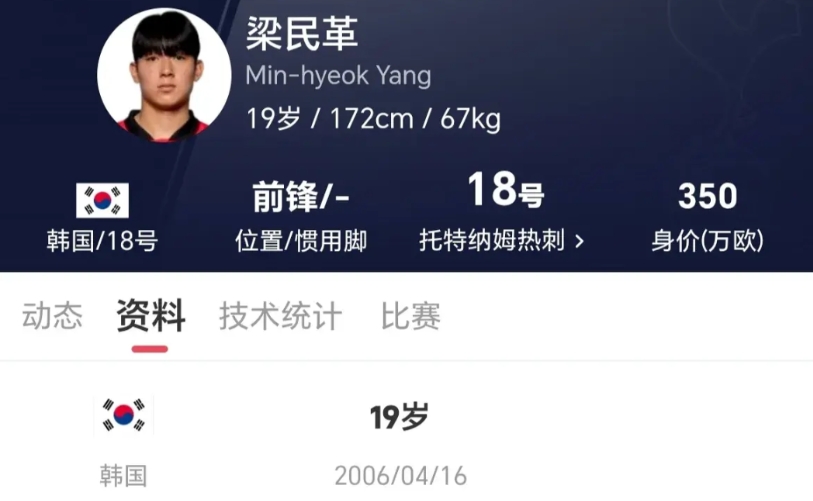 孙兴慜要去美职联淘金了,也将告别下赛季热刺的欧冠,热刺生涯到手一座含金量较高的欧联杯冠军奖杯,孙兴慜之后还有梁民革,能否接过孙兴慜的衣钵在热刺站稳脚跟? 有了孙兴慜的成功案例,热刺似乎对韩国球员比较青睐,400万欧,热刺冬窗从江源FC签下梁民革外租至英冠半赛季,梁民革在女王公园巡游者送出2球1助攻。 19岁,外租的表现可圈可点,现已结束租借回归并在对阵纽卡斯尔的热身赛替补出场,在2024年获得国内两项最佳球员,不过在热刺想打上主力短期很难,孙兴慜是榜样也是难以超越的鸿沟。