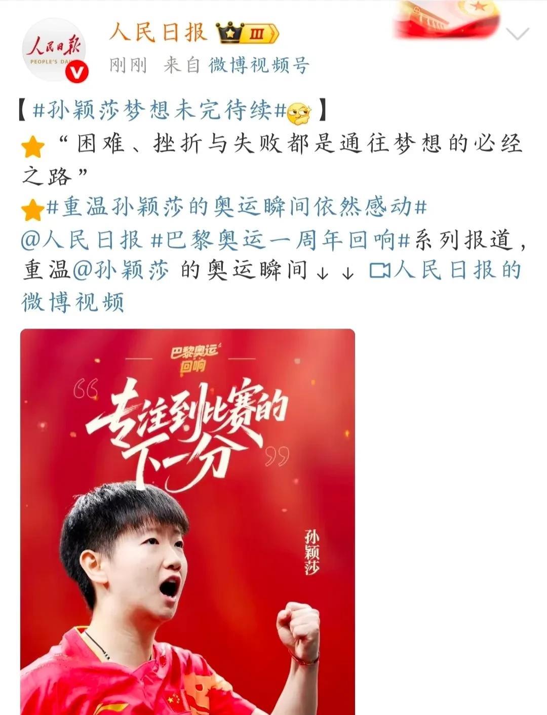 最近流行回巴奥忆杀,是吗? 最难过的路都走过了,以后也再没什么障碍了! 巴奥后的世界杯,世锦赛女单卫冕!莎莎至叻星![赞][赞] 人民日报的文案都是最顶的!真不愧是人民的日报! “困难、挫折与失败都是通往梦想的必经之路”! "孙颖莎的梦想未完待续!" 有些丑陋的东西不想回忆,但既然都回忆了,其实也没什么,因为我们这位明媚的女孩都在赛场上用球拍将这些得粉碎! 莎宝除了乒乓球赛场,她还拥有了商业赛场,还有公益赛场,还有万千球迷的托举!莎宝的人生还是赢的,不是? 加油,莎莎,你的未来一定会越来越好!![加油][加油] #头号创作者激励计划#