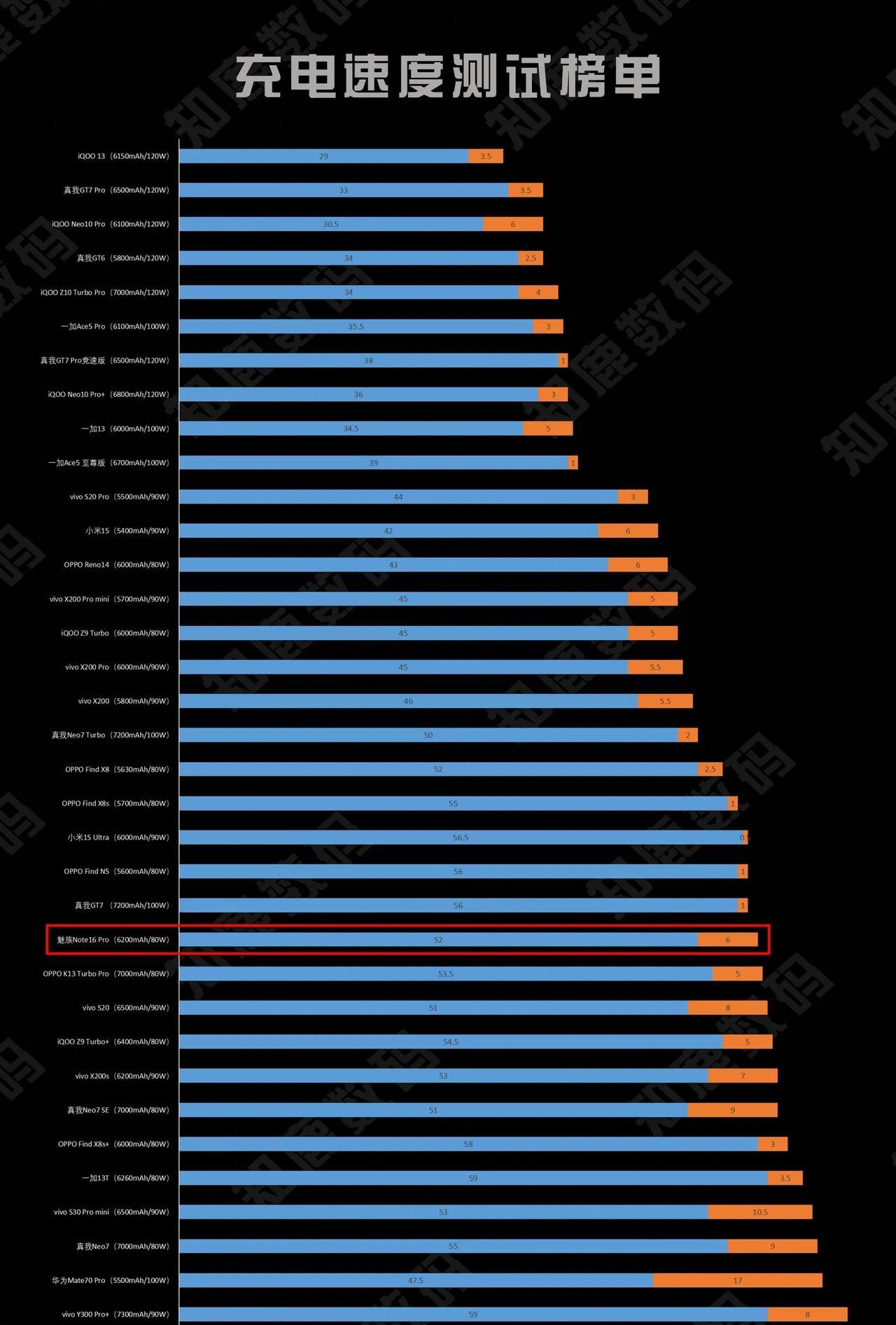 虽说魅族22很值得期待,但前不久发布的两款千元机也很香,魅族Note16系列在同档的优势很明显,尤其是魅族Note16 Pro,设计、屏幕、续航、快充、性能等方面的表现都比较均衡。 魅族Note16 Pro内置6200mAh电池,支持80W有线快充,实测52分钟充至100%,58分钟完全充满;经过我们数据库5小时综合续航测试,剩余电量56%,你觉得这成绩怎么样呢?[吃瓜群众]#知鹿数码数据库#
