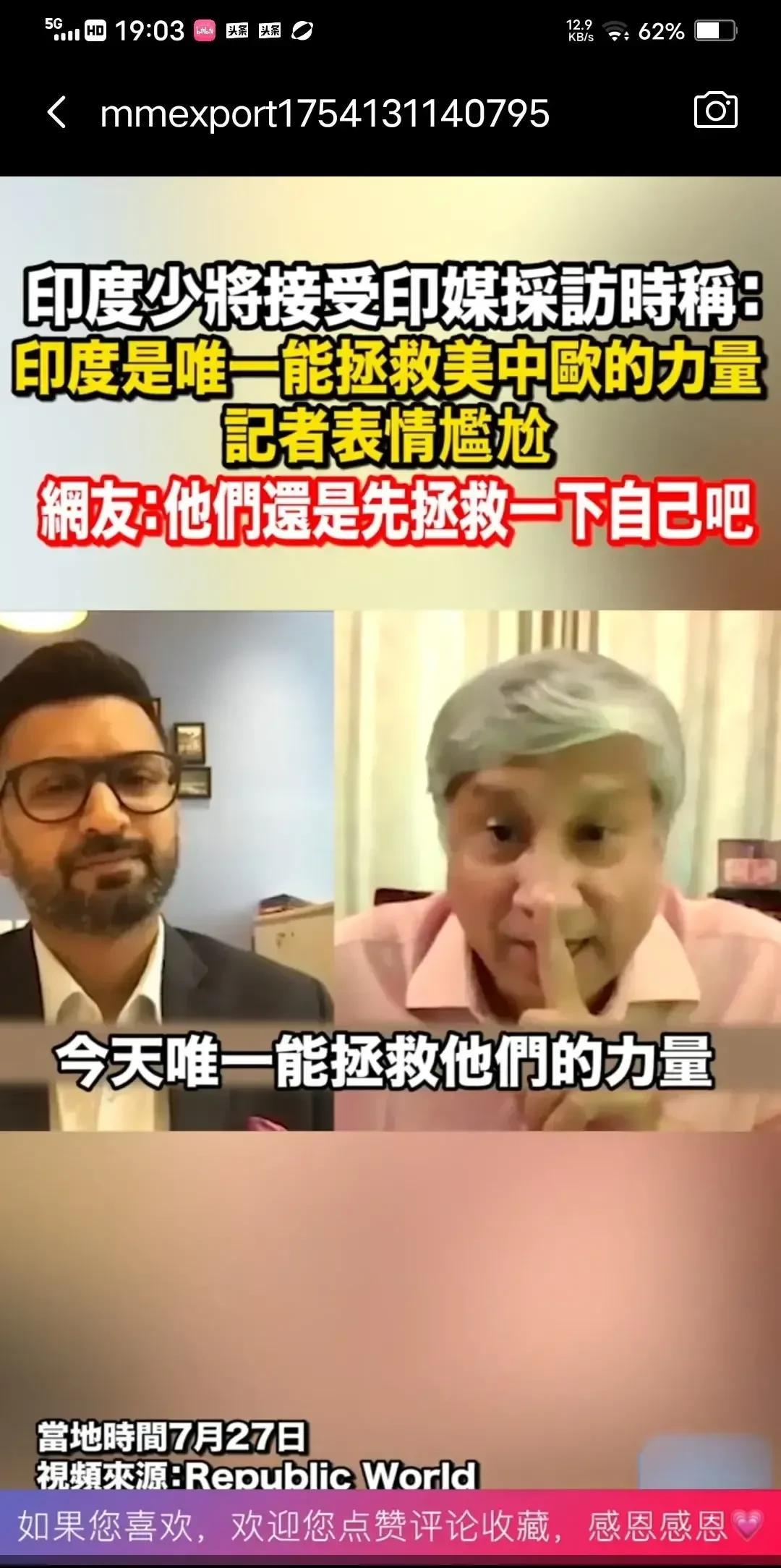 印度少将称印度是今天世界四大经济之一,是美中欧之后的第四极,也是今天唯一能救美中