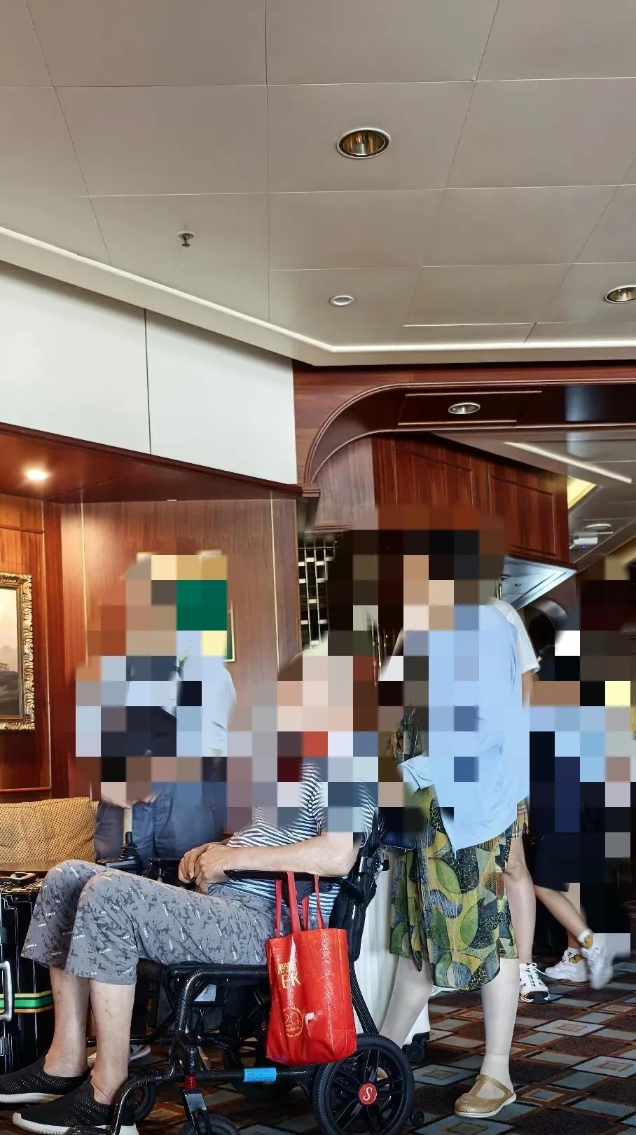 邮轮游之——轮椅 据乘务员说我们这条游轮上有1200多名游客,这应该也就是个中等量级的邮轮。 据我观察,这艘邮轮上最起码有十个左右坐轮椅过来的老人。其中,有两个老太太,剩下的全都是老头。 几次碰见那两个老太太都是儿子推着,身边没有别人,做为旁人的我,看上去心里都特别特别的踏实。 儿子把老妈妈推到自助餐厅,安排好座位,一趟一趟地取餐,先伺候老妈妈吃舒服了,自己再去紧忙地划拉几口,老妈妈说“儿子,不急,慢慢吃”儿子说“嗯,我马上就吃好了,一会儿推您去甲板上透透风”。 餐厅人多嘈杂,儿子总是耐心地贴近老妈妈的耳朵耳语,说话时永远是满脸陪笑,耐心、温和到了极致。 那种发自心底里对妈妈的爱,才是最最纯真的,最最高级的爱。 先别提什么养儿防老,就冲四十多岁的儿子能耐心地、周到地陪老妈妈这一趟邮轮游,就能看出老妈妈在儿子心中的位置,这儿子自然没白养。 老头们则不然,多数都有老婆儿陪伴左右,还有儿女或者是保姆陪同。 推着轮椅上大巴车是非常困难的事儿,要先把老人推到车门口,然后几个人(有游客帮忙)把老人架上车去,再把轮椅折叠起来,放到大巴车行李箱里。下车的时候更显困难。 一个老头在上车前拉大便了,男保姆一个人把老头架起来,老婆儿麻利地把拉拉裤tun下,拿出一打子湿巾,给老头好歹擦擦,穿上一条新拉拉裤,几个人把老头拖上了车。 那一刻,车里静悄悄的,所有人都沉默了,大家不是在嫌弃什么,而是在为老头的尊严感到惋惜,为老婆儿的付出感到同情。 回来出港的时候,和一对推轮椅的老夫妻一同走了一段路,聊天得知,老两口都是六十五岁,老头坐轮椅几年了,这次出来是下了好大决心的,没成想还是这么难。 其实,邮轮上对推轮椅的人员是处处行方便的,那对于没有年轻人陪同的老年人来说,困难也是难以预料的。 老太太说“这几天,我实在是太紧张了,照顾他吃喝起居,推着他楼上楼下的跑,手机还没信号,跟孩子们也联系不上,心里一点底都没有,早知道这样,说什么也不出来呀。” 我感觉,这些坐轮椅出来的老人,大多是子女们的一片孝心,趁父母状态尚可,让他们感受一下邮轮游的惬意。如果单单就老夫妻们而言,无论如何是没有这份勇气的。 实话实说,暂且不考虑费用多少的问题,推着行动不便的老人出来,如果没有足够的人力保障,这种出游是非常非常受罪的,好人、病人都遭罪。 但从另外一个角度看,又能体会到人间的温暖,晚辈的孝心,游客的热心,船方的贴心,尽可能的让人感受到了人世间的美好。