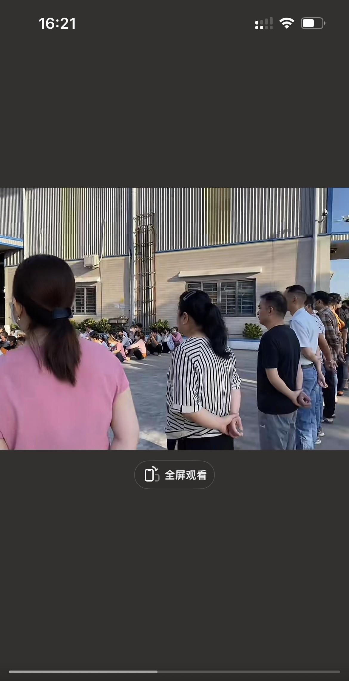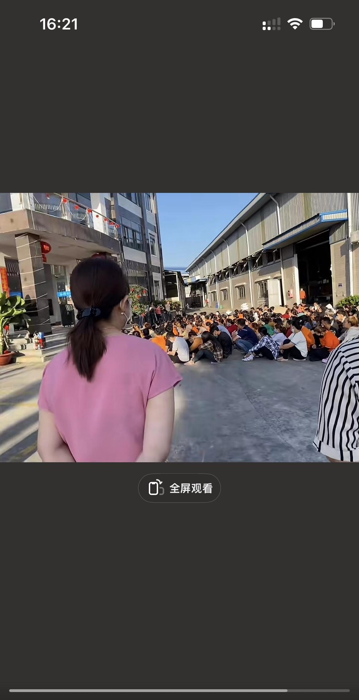 越南鞋厂开早会,工人坐在地上听,领导管理人员站着围观,像是在审判犯人一样,天天开