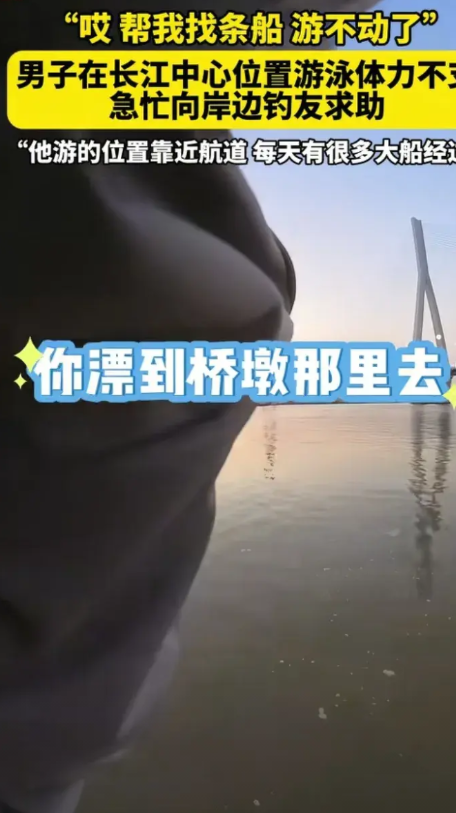 刘先生表示,当时看到他的位置非常靠近航道了,每天有大量船经过,距离我们这里大概200米左右,只看到了小黑点,没有抱到桥墩,不久后救援船就到了,他漂到下游后自己就上来了。