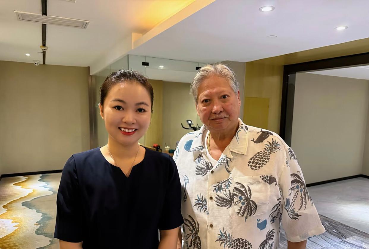 洪金宝和妻子在汕头一家酒店被偶遇,高丽虹真的太美了,打扮很洋气,她比洪金宝小了15岁,两人看起来像父女!
