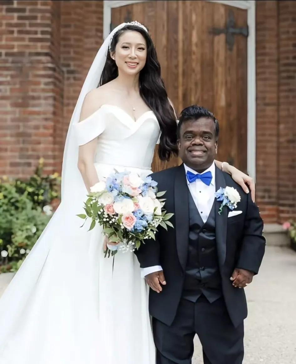 这段姻缘最难的的不是男女身高差,是女方家长竟然同意了这门亲事! 后来才知道,这位加拿大华裔美女的父母都是教会教师,眼光自然和普通人不一样。 阿妮塔·温·李身高162,印度裔丈夫蒂莫西·穆图身高120,女的是企业家、网红,男的是工程师和一个慈善组织的联合创办人之一。 女方应该是更看重配偶精神层面的东西,阿妮塔在网文上写到: “所以,如果你还在等你的人……他们可能看起来和你想象的不一样,这可能是最好的部分。 因为一个人的外在就是外在,真正重要的是内心——心、灵魂、善良、他们对待你和他人的方式……” 能得到父母祝福的婚姻,起点还是很高的。 印度人的家庭生好几个很常见,细水长流,这两人会不会要很多孩子可以观察着看! 因个头不高而自卑的男孩子们都可以从中找到力量! 矮,不能成为找不到老婆的理由。