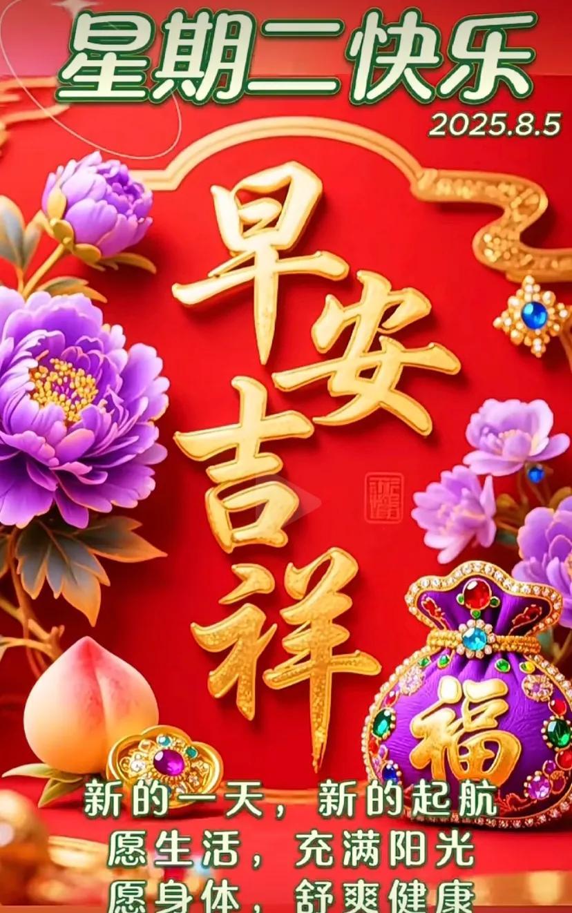 2025年8月5日,星期三,农历闰六月初十三,早上好,生活甜蜜,幸福美满。