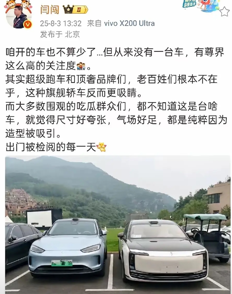 看来以后买车还是不要买尊界S800了,开这个车出去根本抬不起头来! 看了闫闯的描述,有些社恐的人怎么开啊?每次出去这么多人盯着你,感觉鸡皮疙瘩都起来了! 就算开超跑也不至于这样吧? 而且这种车不都有司机吗?怎么这些产品人大V不找一个司机?